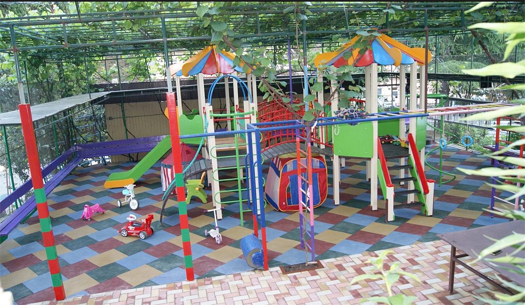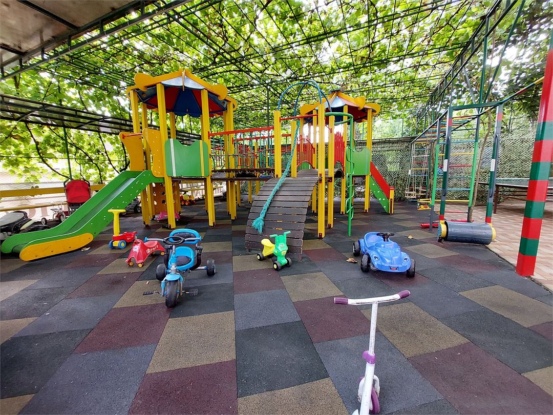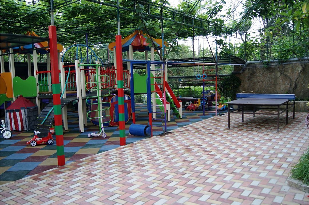 Детская площадка с травмобезопасным резиновым покрытием + детский игровой и спортивный комплекс, теннисный стол.