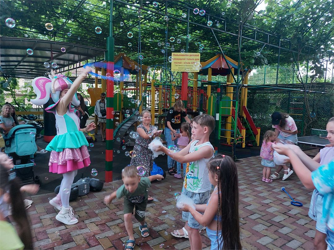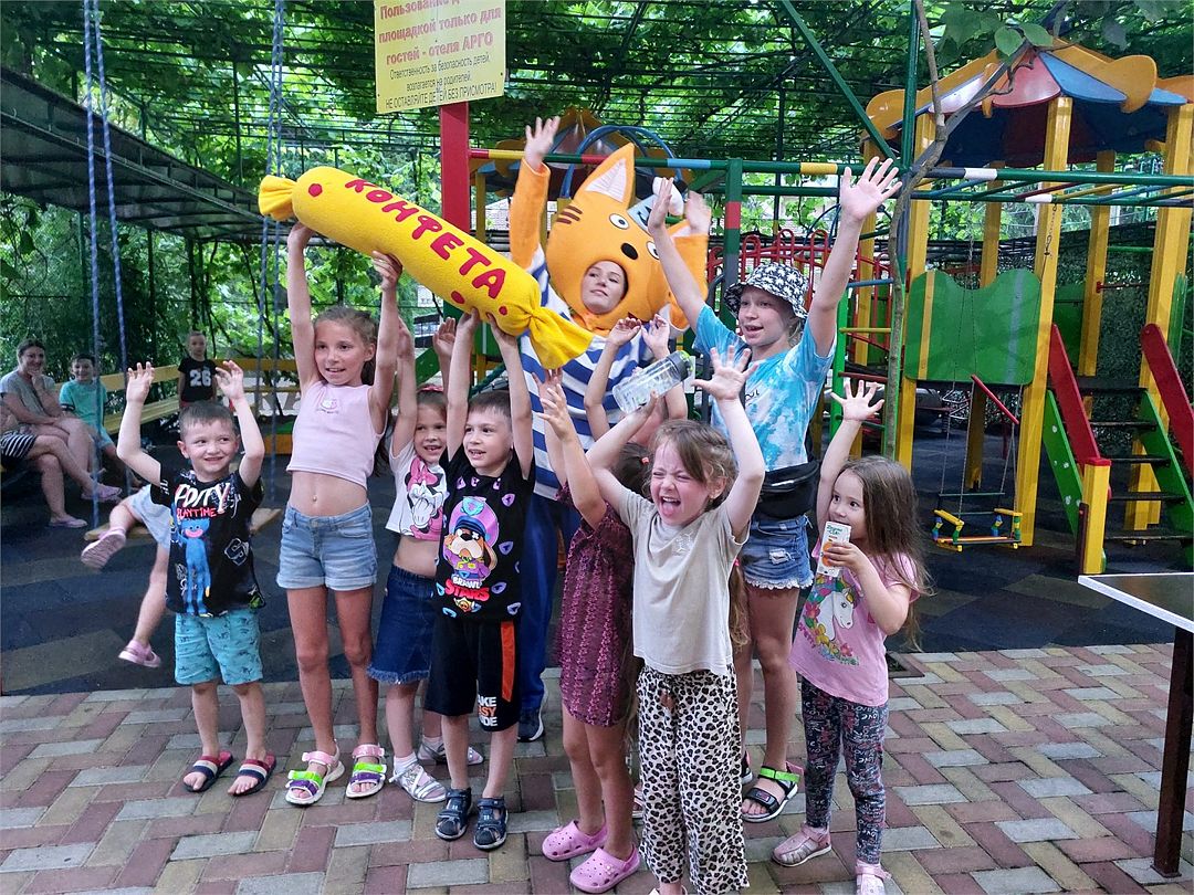 Путешествие с семьейОтдыхом очень довольна!Кто хочет достойный семейный отдых с детьми, то непременно в Арго (Лазаревское). Мы жили с дочкой (4 года) 6 дней. И, честно говоря, нам не хватило дней! Если бы не купленные билеты на поезд, продлили бы еще. Понравилось многое! 3 (Три)!!! бассейна, два из них под крышей - удовольствие для маленьких и больших, хоть в дождь, хоть в жаркую погоду (дочка до этого боялась плавать одна, теперь хоть и с кругом, но прыгает в бассейн бесстрашно). Много приезжих детишек, мы подружились со многими так, что в последний вечер дошло дело до обнимашек. Это к тому, что атмосфера в отеле очень доброжелательная, сотрудники отеля всегда улыбаются, здороваются. Кислых мордашек не видела ни разу! Хозяйка Мария очень отзывчивая и душевная, которая во многом старается пойти на встречу отдыхающим. Очень удобно, что на территории есть своя столовая. Порции просто огромные! Еле доев свою порцию, приходилось, как настоящей маме🤭, доедать за ребенком. Это испытание еще то, потому что реально много! Номер нам достался с шикарным видом - захватили всё: и бассейн на крыше, и горы с неповторимой растительностью, и море! В самом номере многое продумано до мелочей: крючочки, розетки в нужных местах, тряпочки, тазик, полотенца, мыльные принадлежности ну и тд. Вода всегда горячая и с хорошим напором. Лоджия со столиком, сиди и наслаждайся видом из окна. Ну и самое главное, отчего моя доченька с нетерпением ждала вечера - детская анимация!!! Каждый вечер! Очень весело и дружно. Родители общаются, дети занимаются. Класс! Игровая детская площадка - отдельная строка! Комплекс реально один из лучших. Лазалки, горки, кольца, канат, качели, машинки, самокат и много чего еще! Есть еще и боксерская груша! Ну это если вдруг...😊🤭Вообщем, без преувеличения и без прикрас- отдыхом в Арго я довольна!