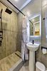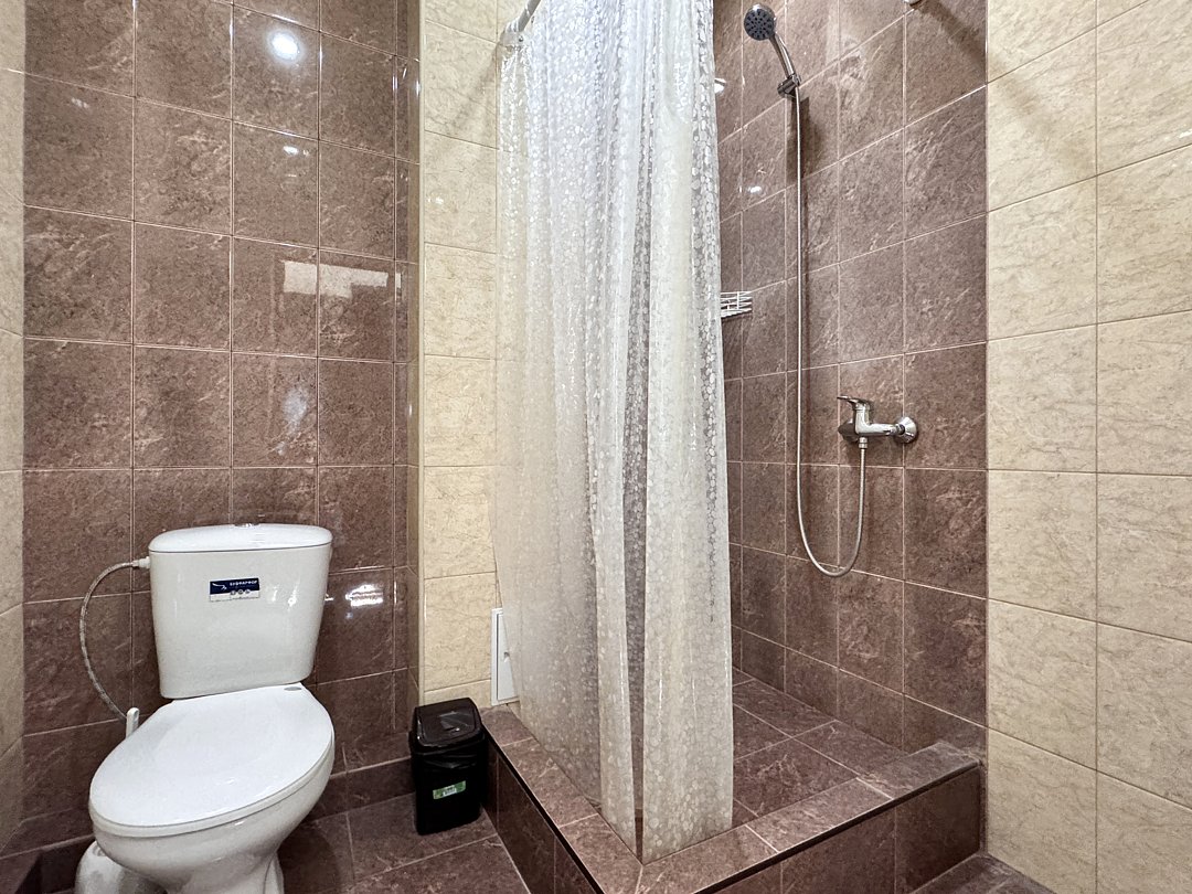 Санузел: душ, умывальник, зеркало, унитаз, фен, комплект полотенец, тапочки, набор гостиничной косметики.