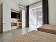 Уютный, светлый номер с балконом и видом на территорию отеля. Номер оснащен: двуспальная кровать, прикроватные тумбочки, прикроватные бра, туалетный столик, шкаф, вешалка, зеркало, электрический чайник, мини-холодильник, телевизор, кондиционер, шторы блэк-аут. Ванная комната: душ, зеркало, фен, комплект полотенец, тапочки, набор гостиничной косметики. Небольшой балкон, сушилка для белья.