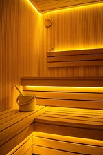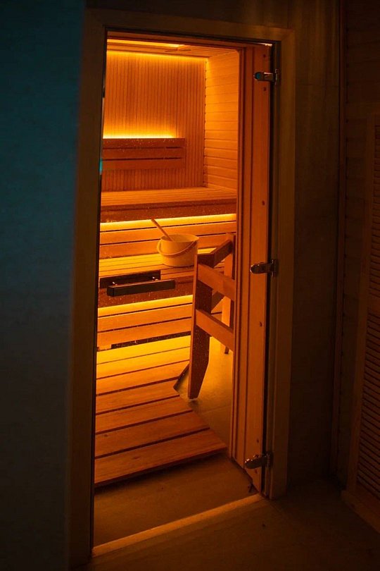 СПА-зона: джакузи, гидромассаж, водопад; сауна, обливная бочка с холодной водой.