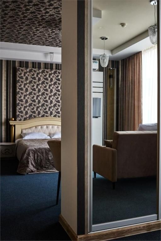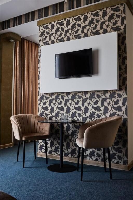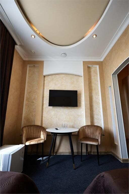 Номер уютно обставлен и оснащён необходимым, чтобы отдохнуть после долгого и насыщенного дня. Имеются телевизор, сплит-система и мини-холодильник. В санузле имеются средства гигиены, полотенца и фен. Номер состоит из двух комнат.