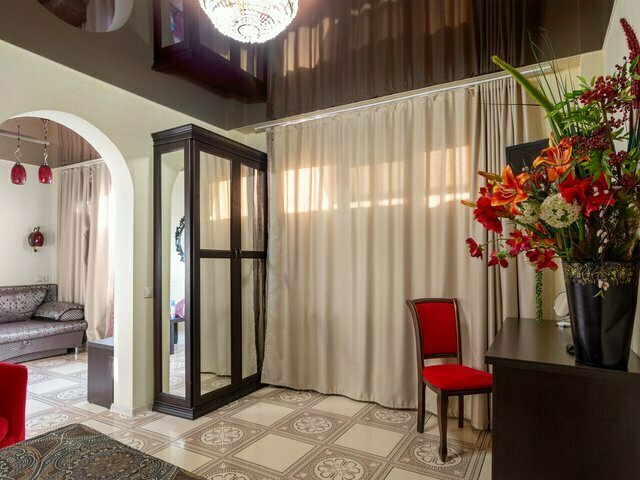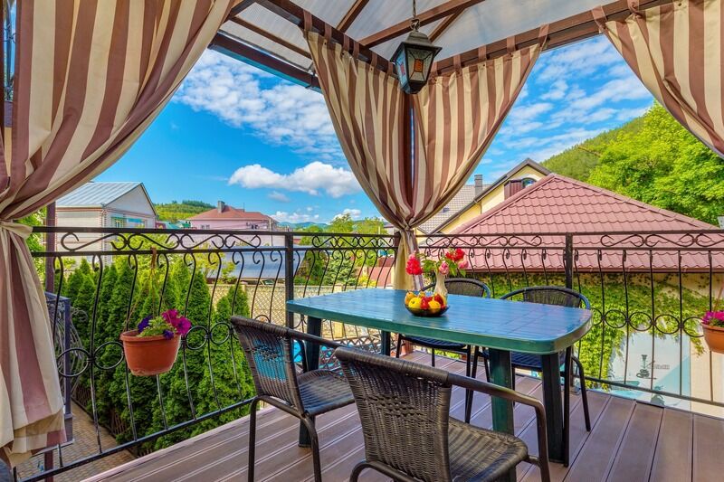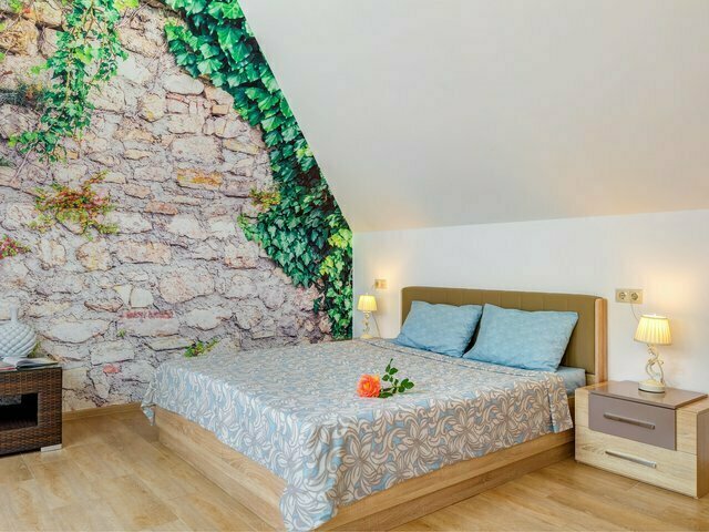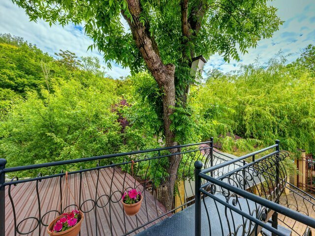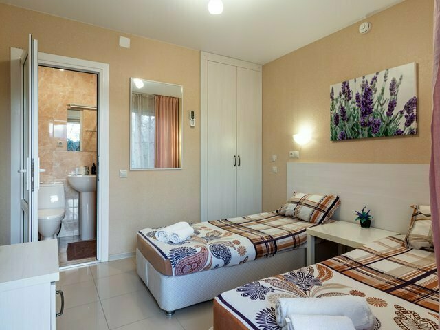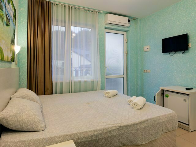 Гостевой дом представляет из себя трехэтажный корпус, который разместился на благоустроенной территории, окруженной живописной горной природой. В распоряжении гостей уютные номера, рассчитанные на 2-х или 4-х человек. В комнатах светлый приятный интерьер, выдержанный преимущественно пастельных оттенках. Номера оснащены всем необходимым для комфортного проживания: индивидуальным санузлом с душем, есть кондиционер, телевизор-ЖК, в ряде номеров предусмотрена мини-кухня, из окон открываются красивые виды на горы или сад.