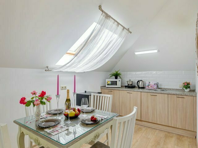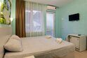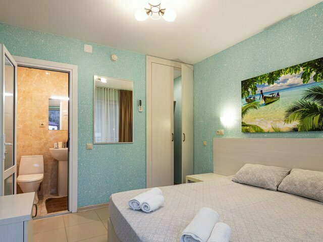 В 400 метрах от гостевого дома находится городской пляж, оборудованный теневыми навесами от солнца и лежаками.