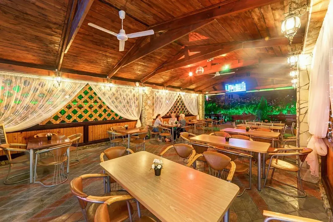 Столики и уютная мангальная зона.