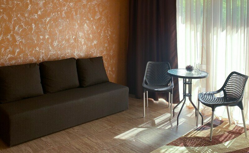 спутниковое телевидение, Wi-Fi, холодильник, кондиционер, фен, ванная комната, банные принадлежности, банные полотенца, пляжные полотенца, тапочки, балкон, двуспальная кровать, стулья, вешалки, зеркало, раковина, душ, вид во двор, стол, туалет, диван-кровать, телевизор с плоским экраном, шкаф-купе, вид на горы, без питомцевВ гостиничном номере