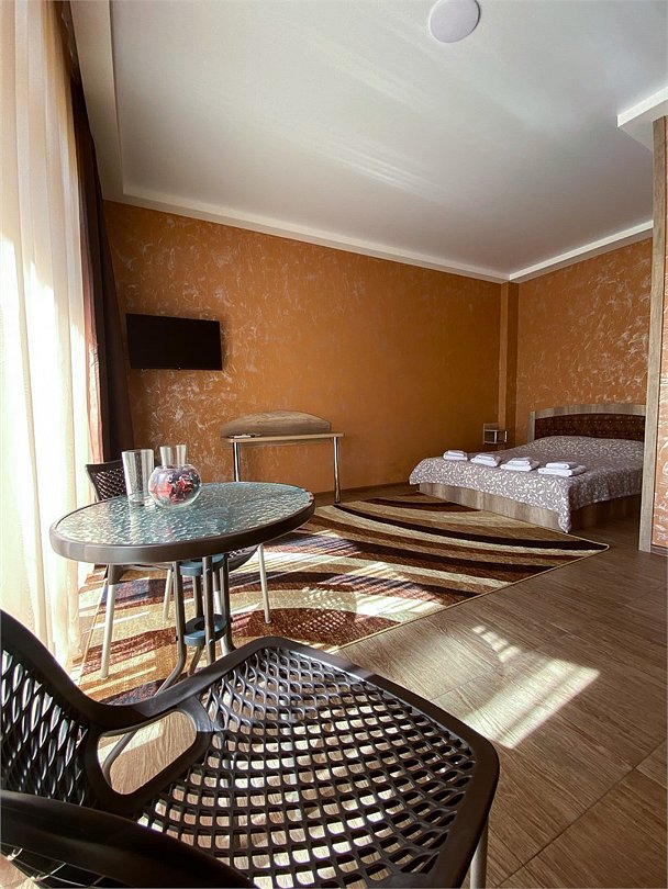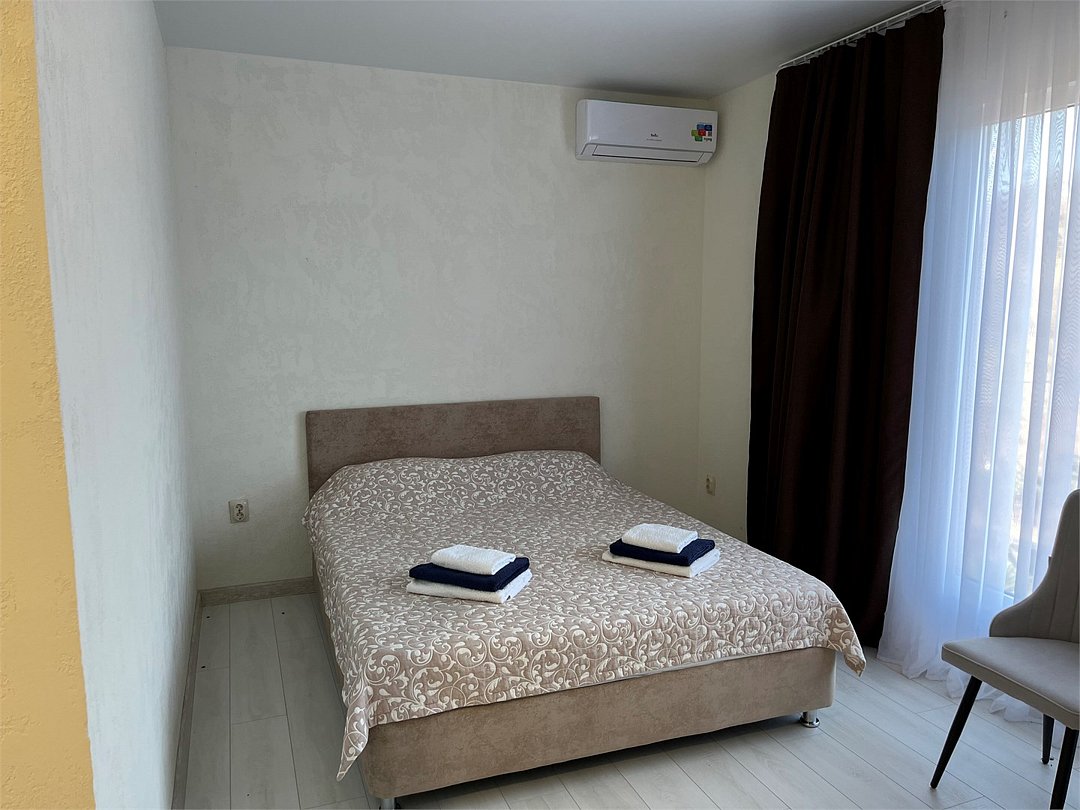 Просторный двухместный номер с огромным балконом 15 КВ.м., на котором можно встретить теплый южный вечер. Подходит для 1-2 х гостей. Мягкая двуспальная кровать, просторный шкаф-купе для ваших вещей и ванная комната с белоснежными полотенцами обеспечат вам комфорт и уют.Услуги и удобства