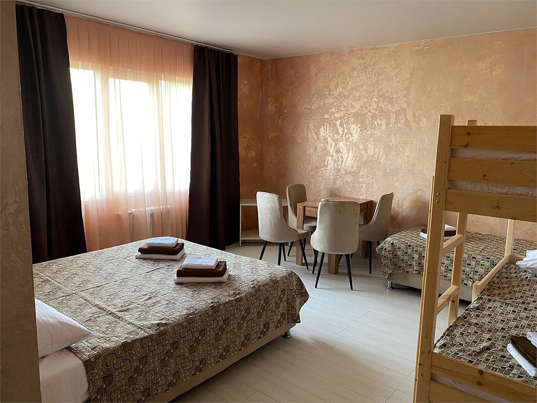 Просторный семейный номер, в котором могут расположиться до 5 гостей. В номере есть все для комфортного отдыха: удобные спальные места и постельное белье для всех гостей, набор полотенец и собственная ванная комната, кондиционер, холодильник, телевизор с кабельными каналами.Услуги и удобства