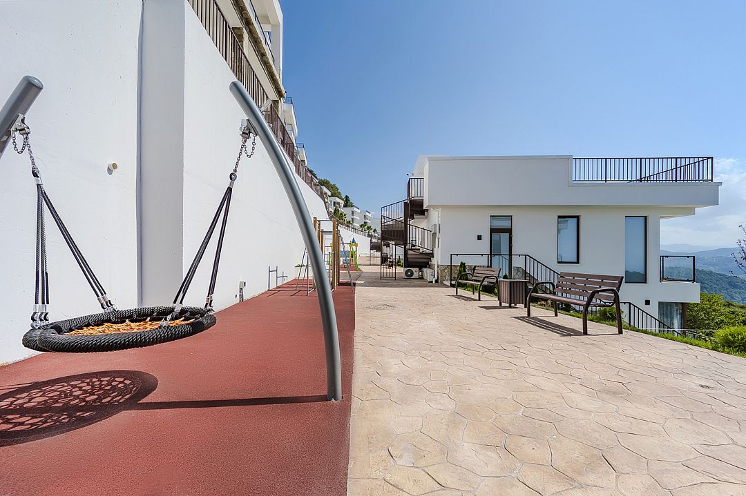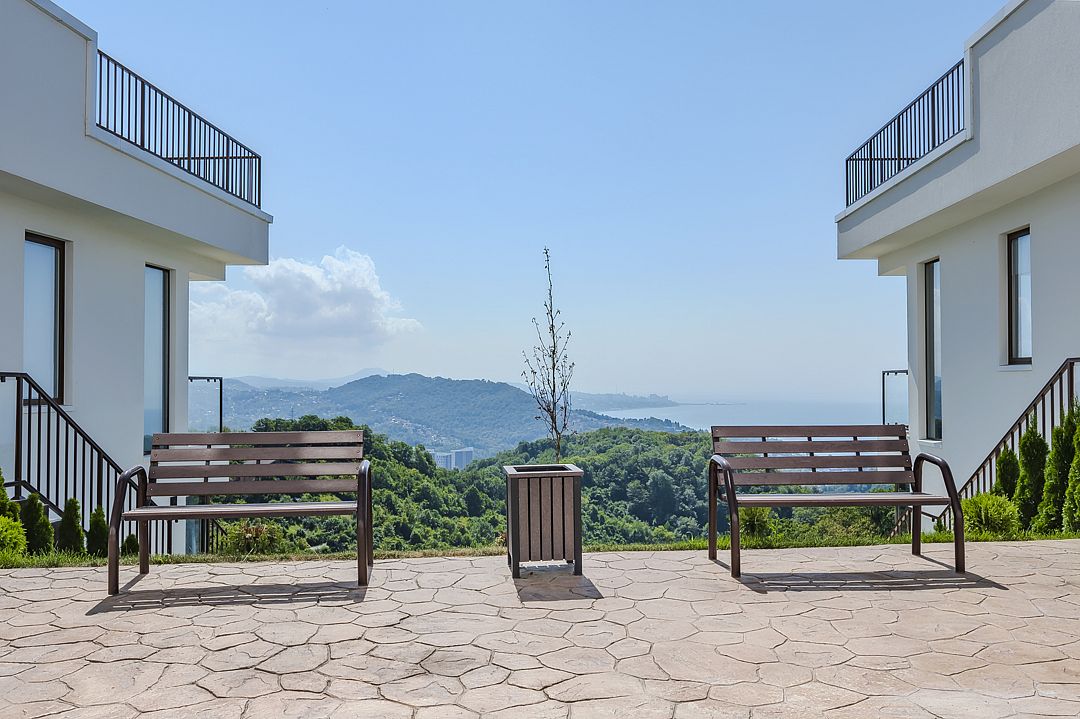 Комплекс состоит из 17 комфортабельных трёхэтажных вилл с панорамой на море, город и горный кластер. В шаговой доступности находятся популярные экскурсионные объекты, живописное озеро, ботанический сад с уникальной флорой. Неоспоримое преимущество района - широкие и просторные пляжи с сосновым лесом вдоль берега.