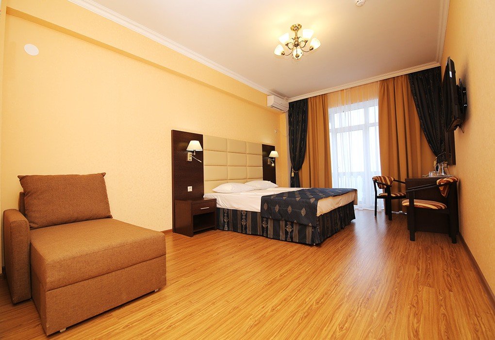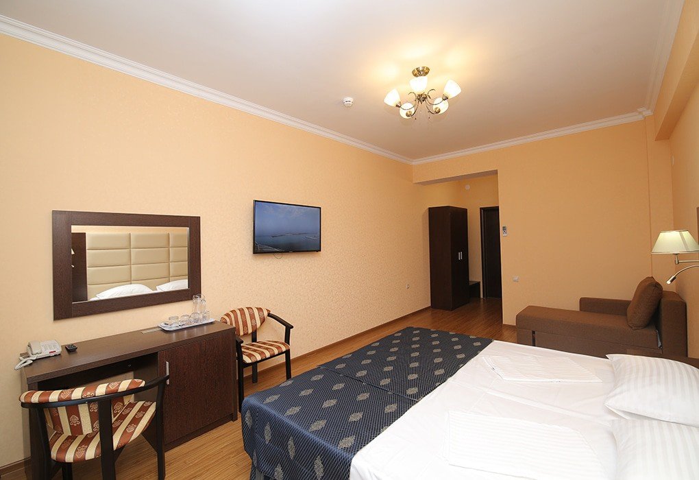 Семейный отдыхДостоинстваОтдыхали в этой гостинице и остались очень довольны! Персонал дружелюбный и отзывчивый. Номер убирали каждый день, все было чисто и опрятно. Техника и сантехника в номере новые, современные. Бассейн и пляж находятся в шаговой доступности, что очень удобно. Еда разнообразная, каждый день предлагались новые блюда, все очень вкусно! Особенно хочется отметить щедрые порции, голодными точно не останетесь. Вид из номера открывался потрясающий - прямо на море. Однозначно рекомендую.