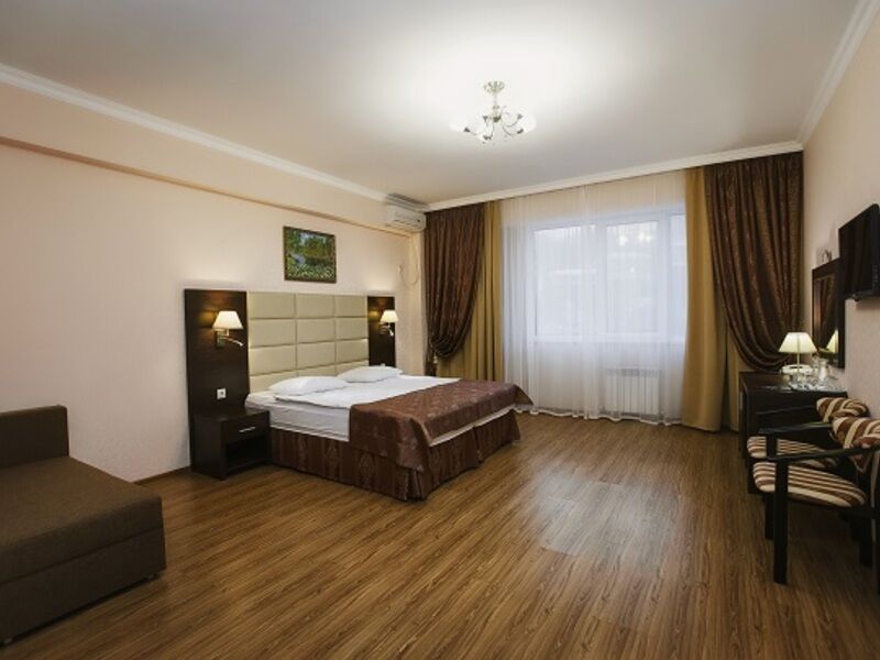 Номерной фонд пансионата обширный. Все номера хорошо меблированы и оснащены необходимой бытовой техникой. На каждом этаже имеется меблированная терраса с панорамным видом на округу.