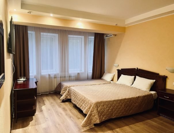 Для размещения предоставляются номера разной комфортности и вместимости. В каждом номере имеется новая удобная мебель, кондиционер, телевизор и холодильник. Для удобства работает интернет Wi-Fi.