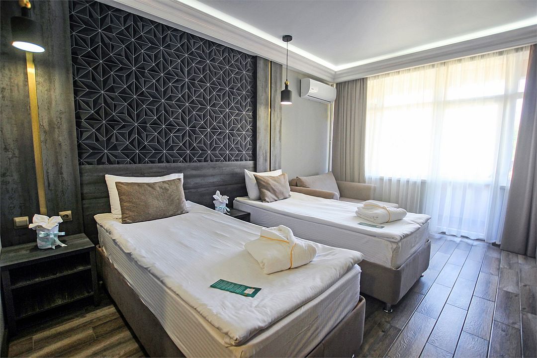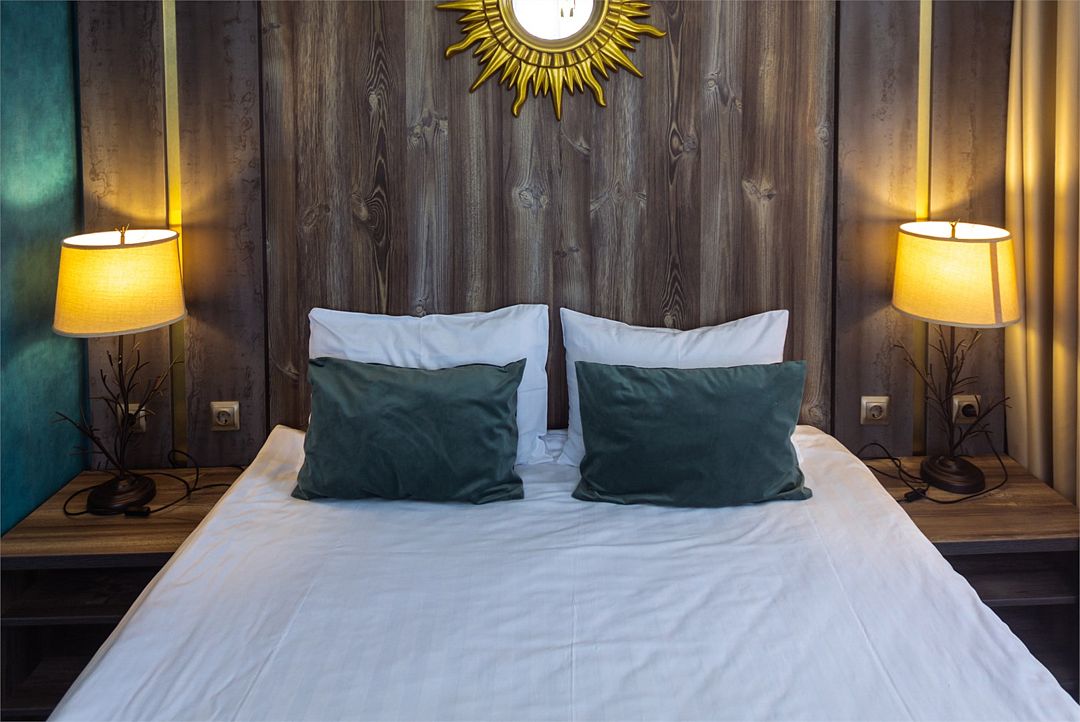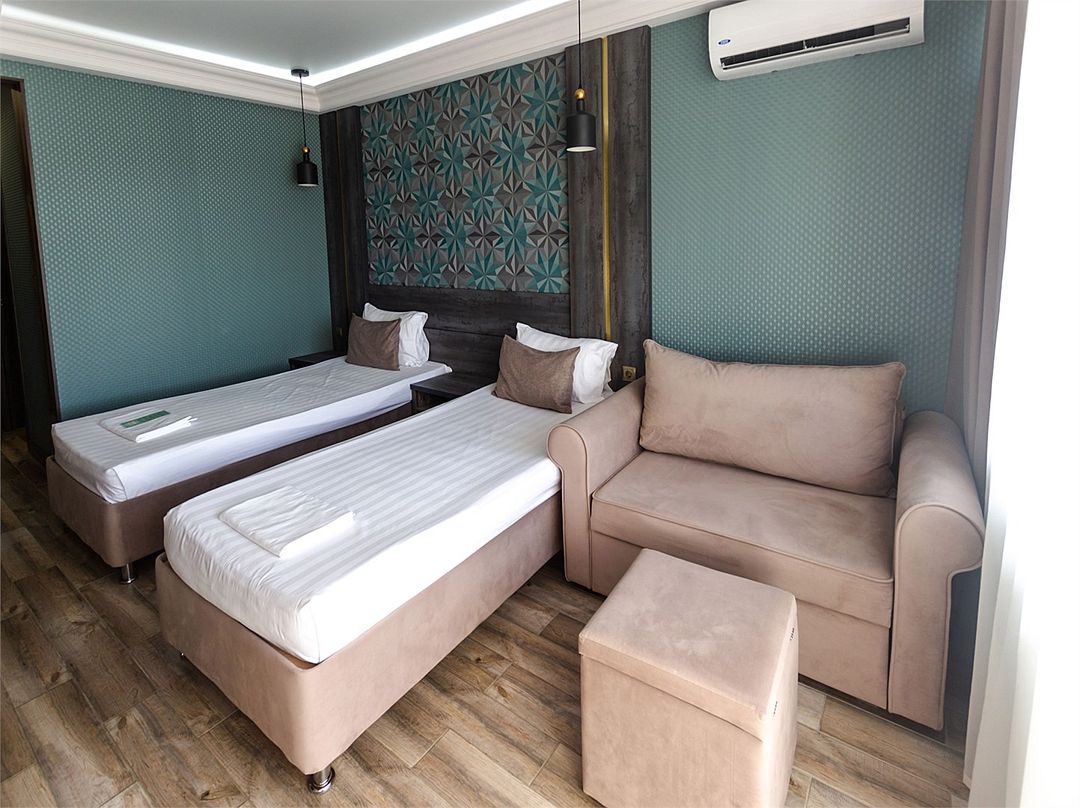Двухместный номер с одной двухспальной кроватью и диваном кроватью с полным оснащением согласно тарифу.Услуги и удобства