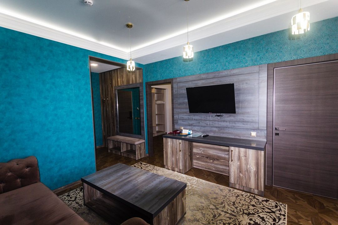 телевизор, спутниковое телевидение, Wi-Fi, светильник, фен, система безопасности, электронные замки, ванная комната, ванна, санузел, халаты, банные полотенца, пляжные полотенца, тапочки, гигиенические средства, балкон с красивым видом, двуспальная кровать, шкаф для одежды, вешалки, багажная тумба, зеркало, две комнаты, обслуживание номеров, чайник, унитаз, раковина, мягкая мебель, кулер на этаже, кресло, высокие потолки, стаканы, туалет, сплит-система, раскладной диван, раскладное кресло, внутренний телефон, мини-холодильник, рабочий стол, антибактериальное средство для рук, неограниченное посещение СПА, два дивана-кровати, кресло-кровать, набор для приготовления чая и кофе, услуги прачечной (платно), вешалки-плечикиВ гостиничном номере