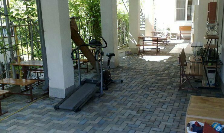 WI-FI на всей территории. Услуги стиральной машины бесплатно. На территории отдыха: оборудована полноценная кухня (газ. плита, холодильник, микроволновка, мангал, вся необходимая посуда в достаточном количестве), столики под виноградом, гладильная доска с утюгом, небольшая библиотека, уголок для игр. Стоянка для машин бесплатно, вся территория под видеонаблюдением.