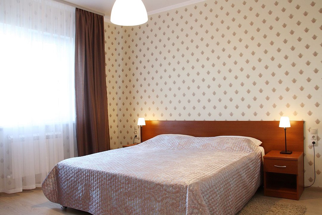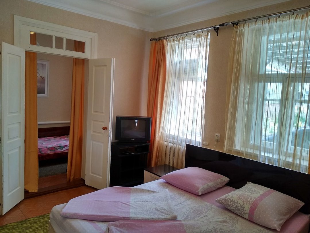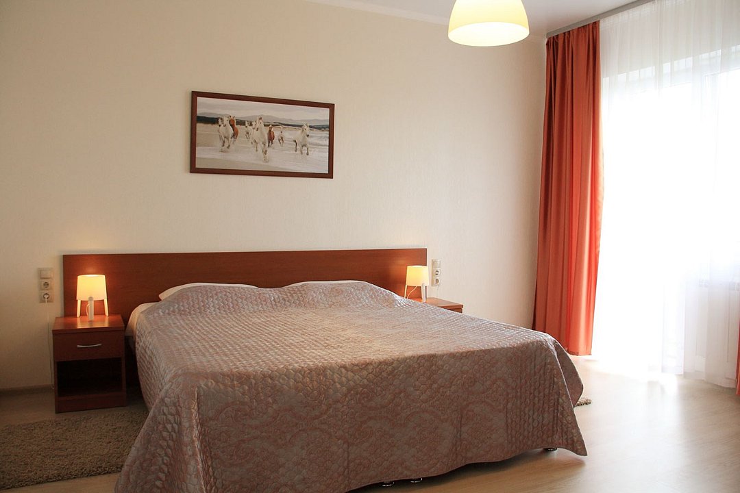 Просторные апартаменты с двумя комнатами и собственной кухней. Номер вмещает до 6 человек. 4 основных и 2 дополнительных при необходимости. Кухня оснащена всем необходимым. В каждой комнате есть телевизор и сплит-система.Услуги и удобства