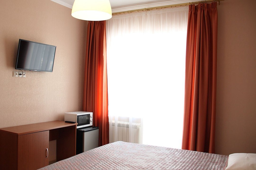 телевизор, Wi-Fi, настольные лампы, микроволновая печь, санузел, банные полотенца, письменный стол, сейф, чайник, кухонная посуда, сплит-система, мини-холодильник, уборка номера, мыло, можно с питомцамиВ гостиничном номере