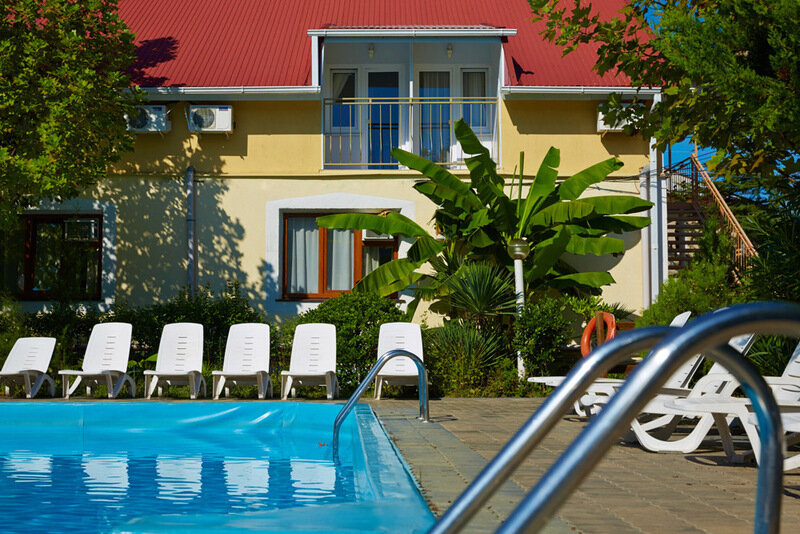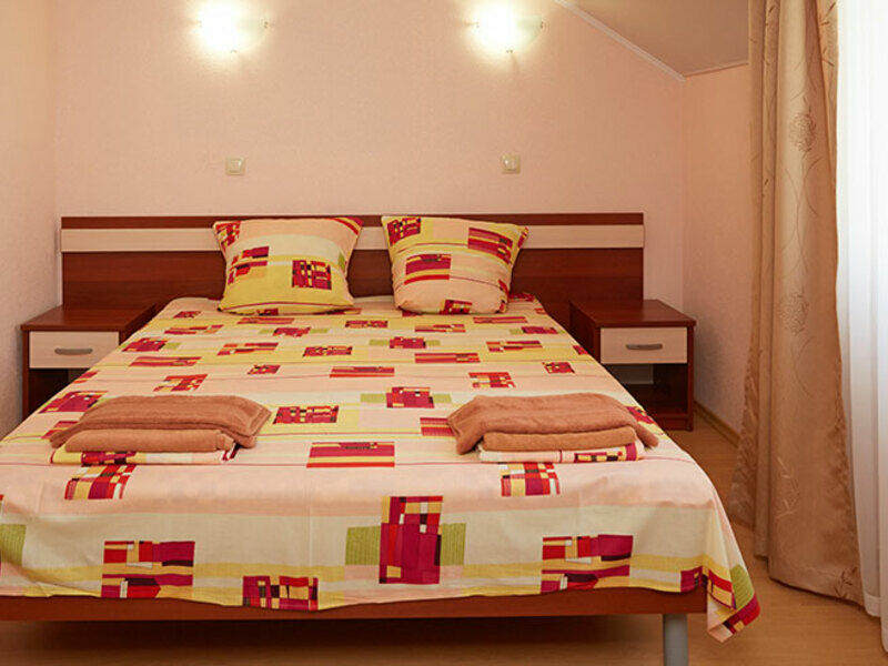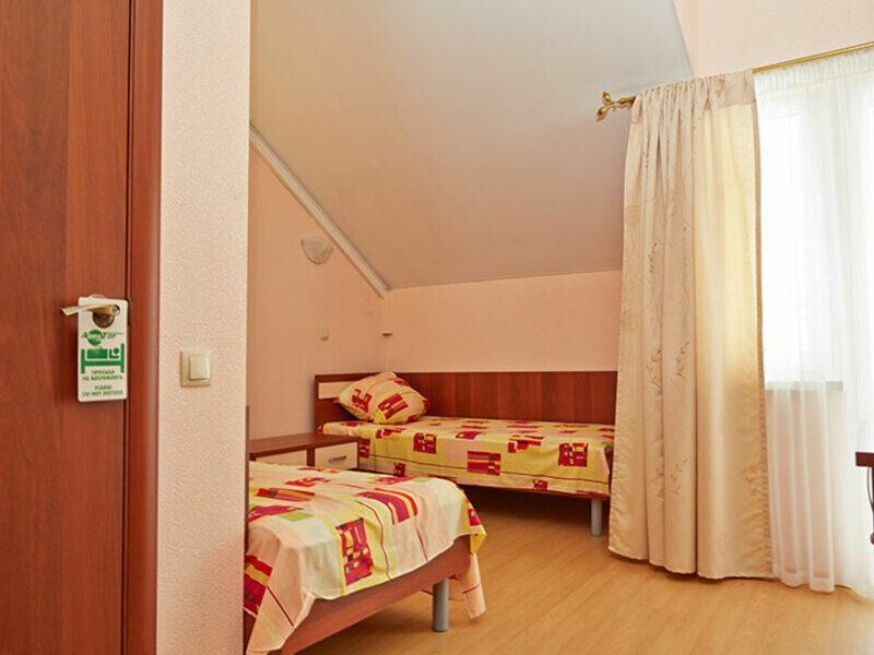 Комплекс занимает благоустроенную территорию площадью 4000 кв.м. и включает в себя 4 спальных корпуса в два и три этажа. Гостей ожидаю номера категории Стандарт, оснащенные санузлом, сплит-системой и необходимой бытовой техникой — телевизором, холодильником, электрочайником.