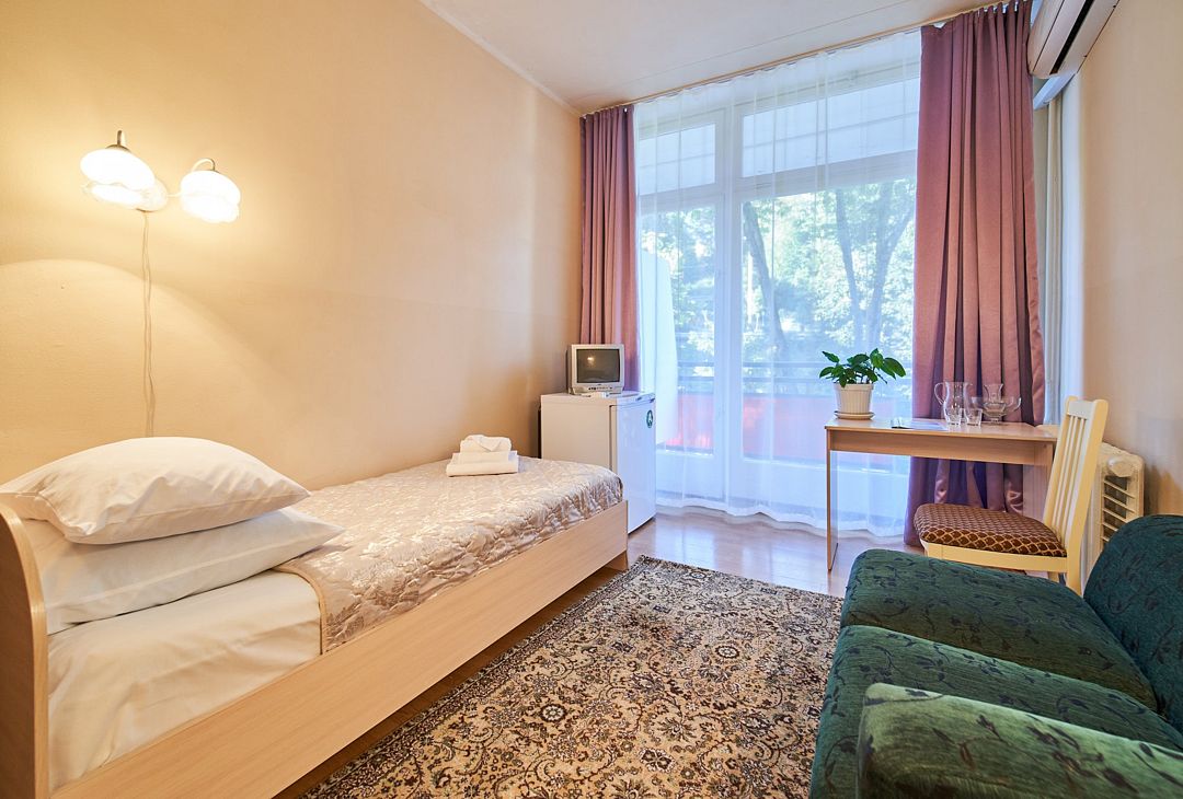 Двухместный номер. Большой, уютный номер с двумя раздельными кроватями (90*200 см) и балконом. Отличный выбор для поездки вдвоем: в номере комфортно размещаются 2 гостей: 2 взрослых или 1 взрослый и 1 ребенок.
