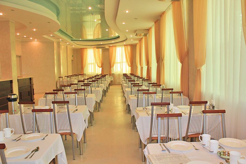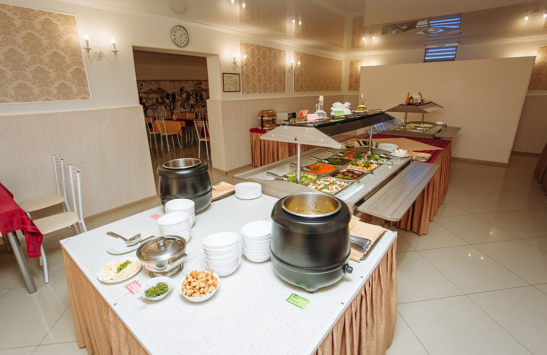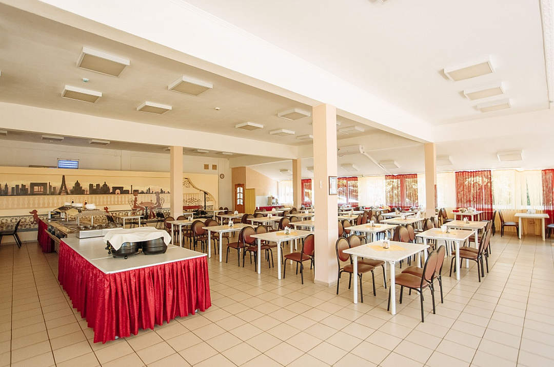 Кафе: на пляже, часы работы 07:00-19:00. Столовая: в корпусе 3 (на 400 мест). Всегда в рационе свежие фрукты и овощи, мясо, птица, рыба и молочные продукты, супы и каши, десерты, собственная выпечка. Есть диетическое меню. В рационе всегда можно найти блюда, чтобы накормить даже очень маленьких детей. -