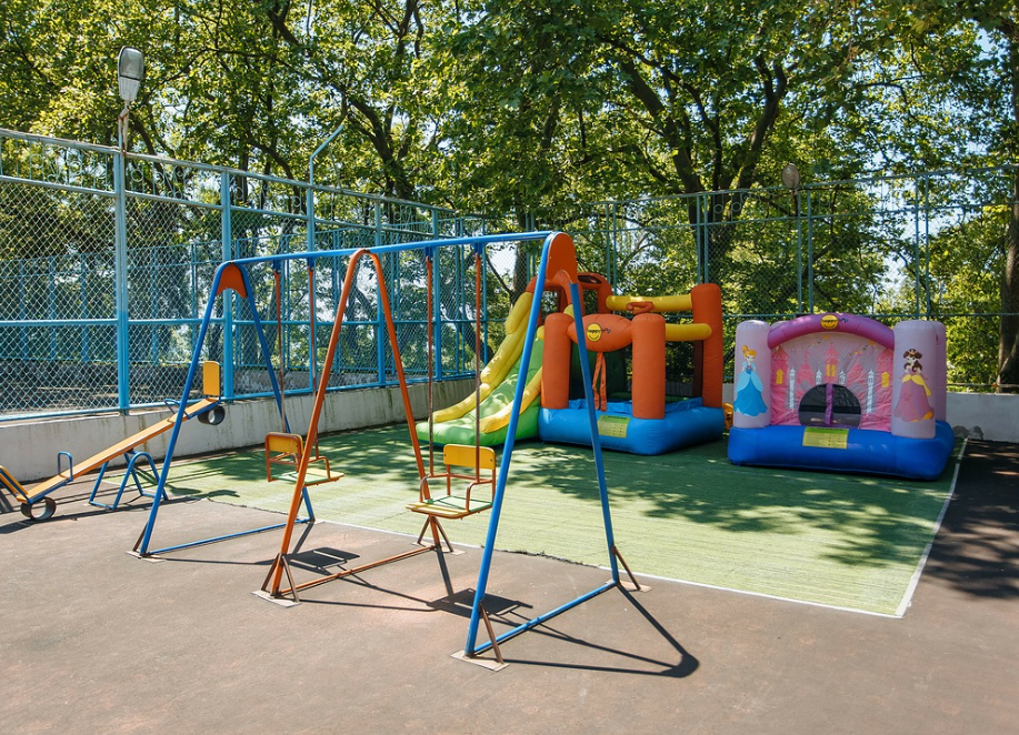 В санаторий «Аврора» комфортные условия для отдыха с детьми: детская анимация (летом), современная детская площадка, детская комната с сухим бассейном с шариками и настольными играми, надувные батуты.