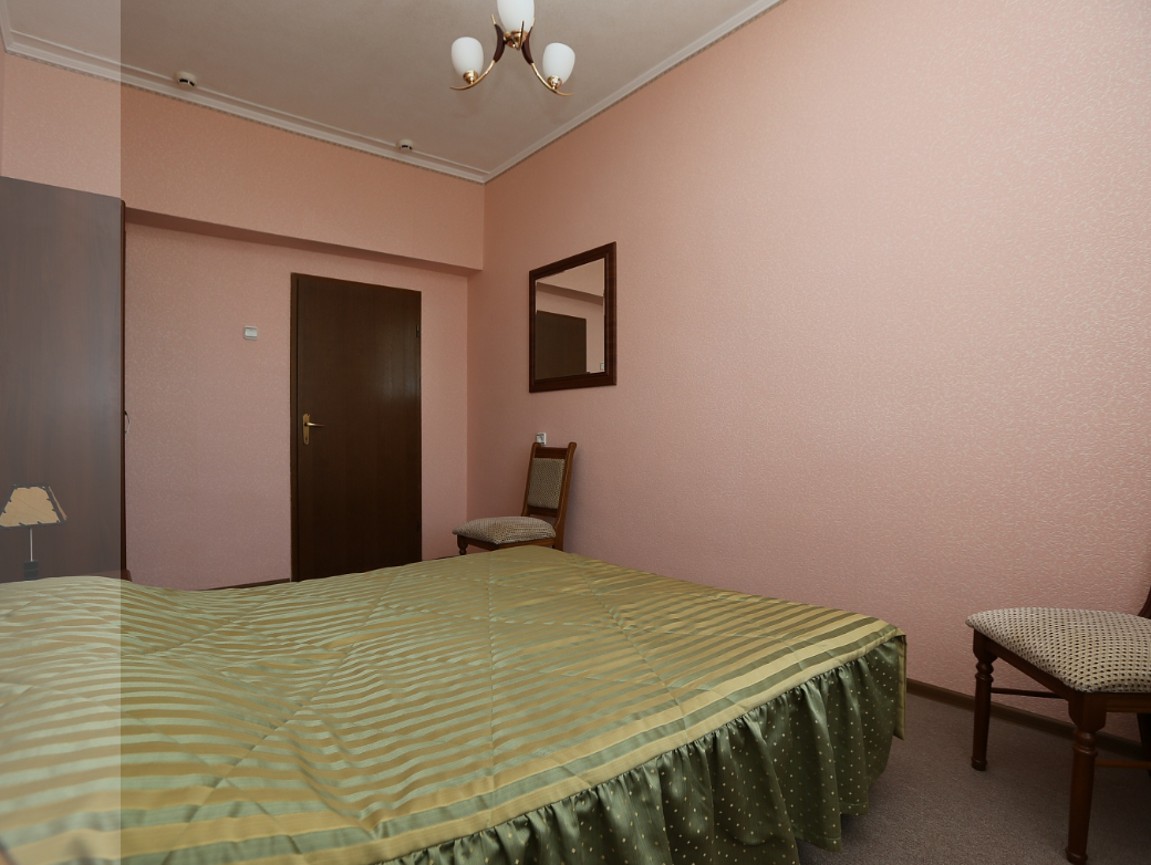 Двухместный номер из 2х комнат 1 категории. Большой, уютный номер с гостиной, спальней и прихожей. Одна большая двуспальная кровать, балкон. Отличный выбор для поездки в вдвоем: в номере комфортно размещаются 2 гостей: 2 взрослых или 1 взрослый и 1 ребенок.
