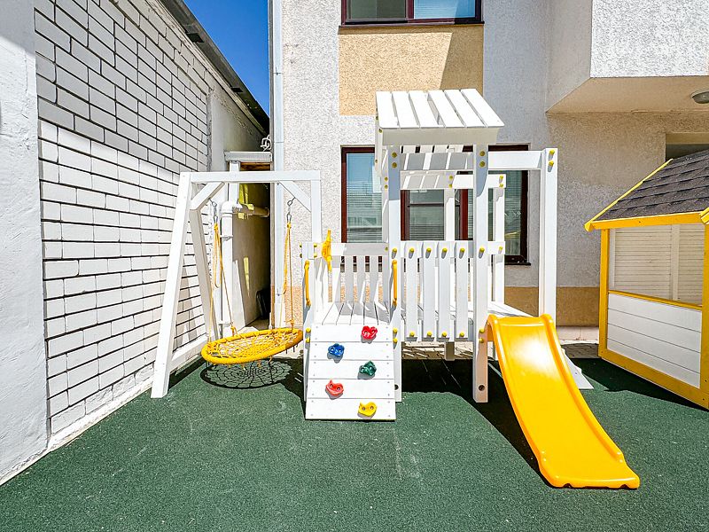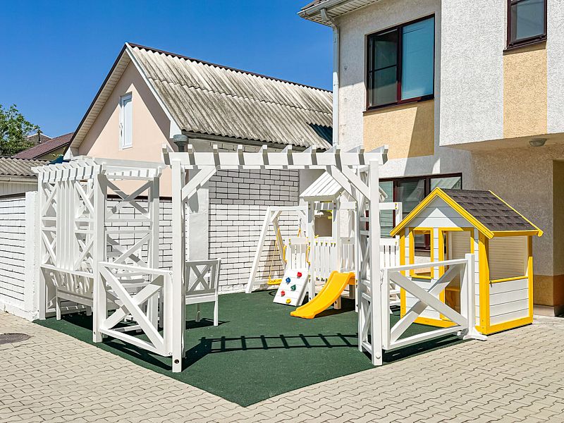 Детская площадка оборудована всем необходимым для безопасной и увлекательной игры малышей.