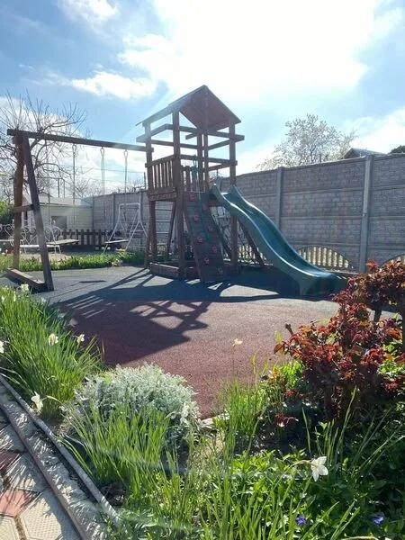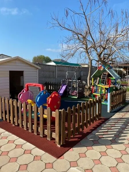- Маленькие гости могут весело провести время на детской площадке с домиком, горкой и качелями.
