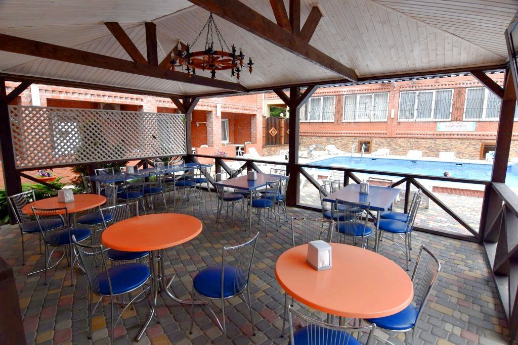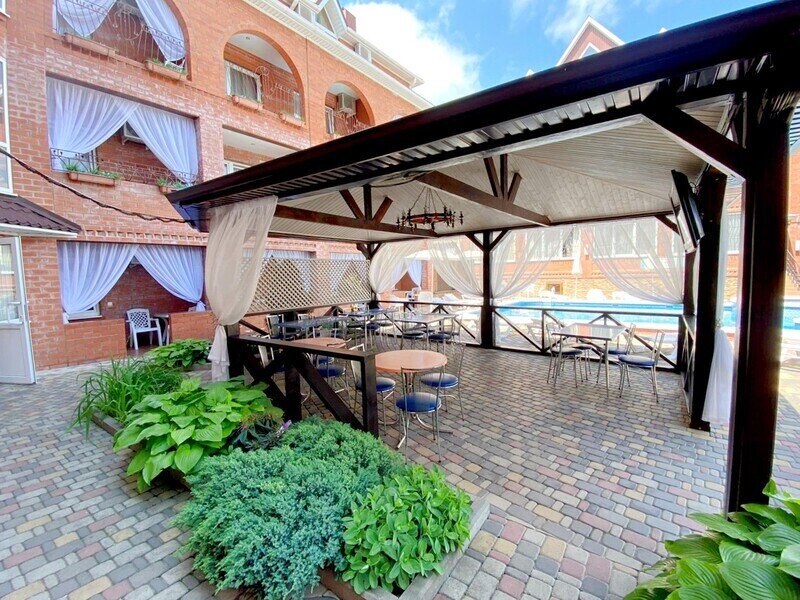 Wi-Fi, холодильник, кондиционер, фен, санузел, банные полотенца, тапочки, терраса, двуспальная кровать, ортопедический матрас, тумбы, шкаф для одежды, вешалки, зеркало, обслуживание номеров, чайник, унитаз, раковина, отдельный вход в номер, душ, плиточное покрытие, стаканы, туалетный столик, туалетный столик, туалетные средства, цифровое тв, телевизор с плоским экраном, номер для некурящих, вид на бассейн, пуфик, общественный бассейн, можно с питомцамиВ номере