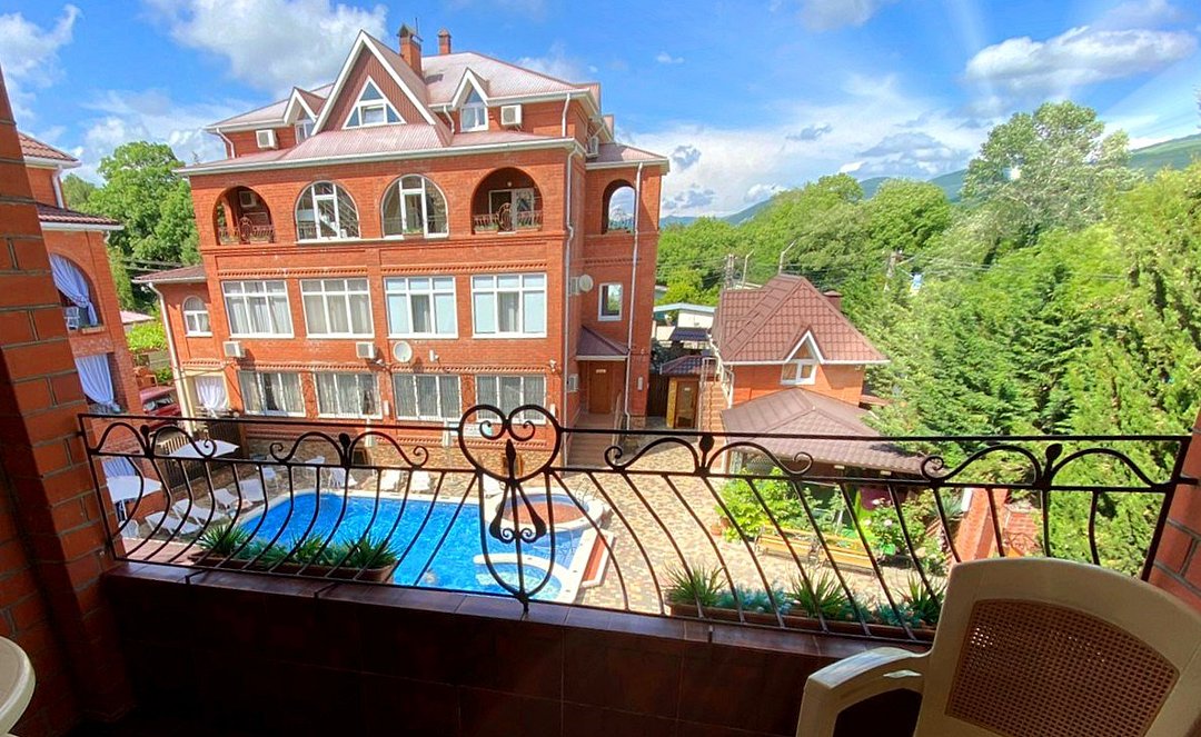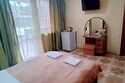 Уютный семейный номер, площадью 16м2, состоит из одной комнаты и санузла. Из номера выход на просторную террасу и к бассейну. Номер оснащен двуспальной кроватью с ортопедическим матрасом и раскладным диваном (140*200), тумбочками, шкафом для одежды, туалетным столиком с пуфиком, зеркалом, холодильником, кондиционером, телевизором с плоским экраном, чайником. Санузел совмещенный с душевой кабиной. Номер укомплектован постельным бельем, полотенцами, тапочками, мыльными принадлежностями.Услуги и удобства