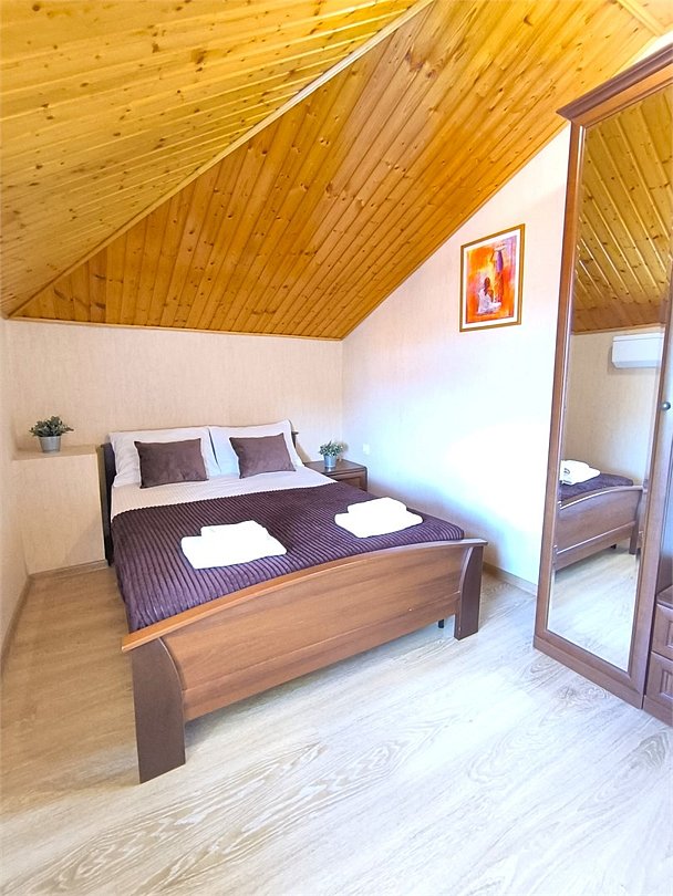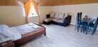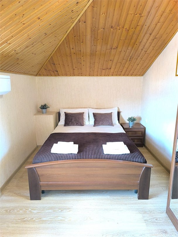 кабельное телевидение, Wi-Fi, кондиционер, светильник, банные полотенца, тапочки, двуспальная кровать, ортопедический матрас, тумбы, шкаф для одежды, вешалки, зеркало, чайник, унитаз, раковина, душ, стаканы, туалетные средства, диван-кровать, раскладной диван, телевизор с плоским экраном, мини-холодильник, мансардные окна, номер для некурящих, общественный бассейн, уборка номера, бутилированная вода, мыло, можно с питомцамиВ номере