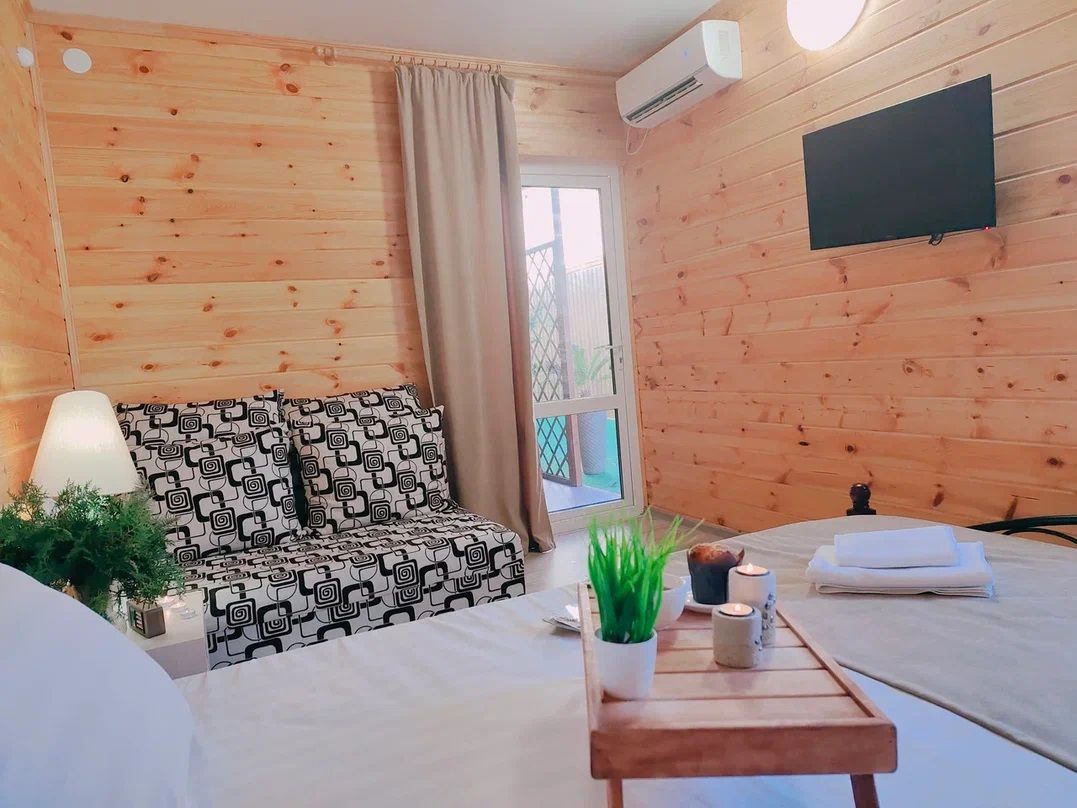 Номерной фонд представлен 25 номерами, 8 из которых оборудованы функциональной кухней. А для более комфортного отдыха предусмотрена общая кухня с СВЧ-печами, блендером, плитами, для самостоятельного приготовления пищи.