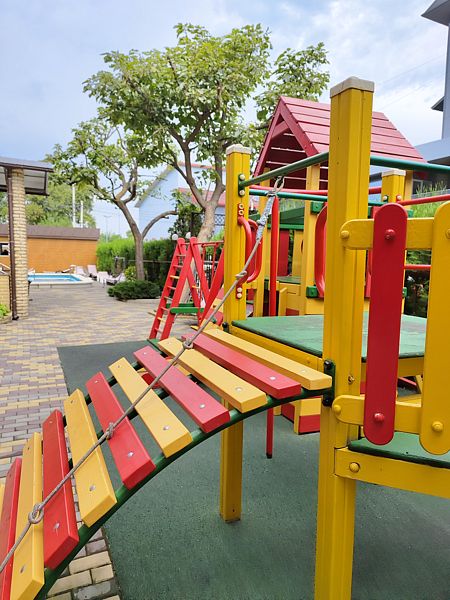 Городок расположен на территории отеля, рядом с бассейном. Здесь можно покататься на качелях, полазать на лесенках, прокатиться с горок, позаниматься на турниках.