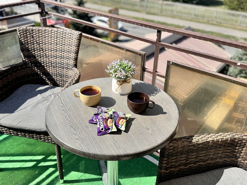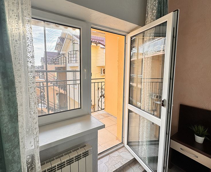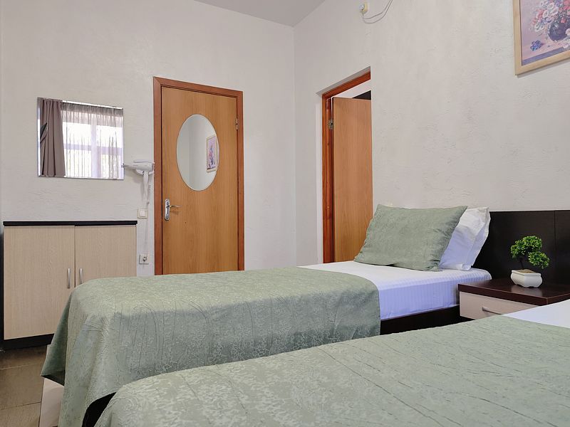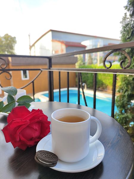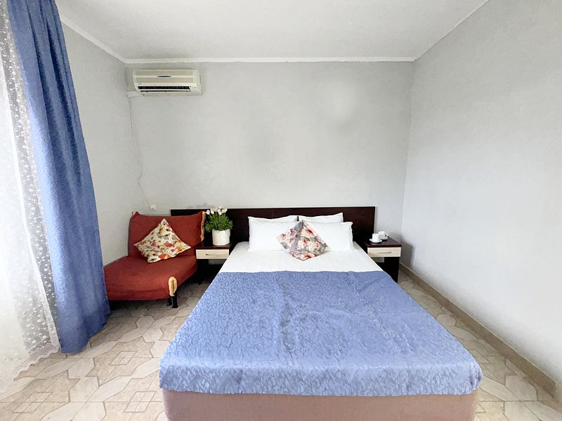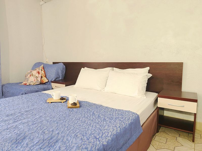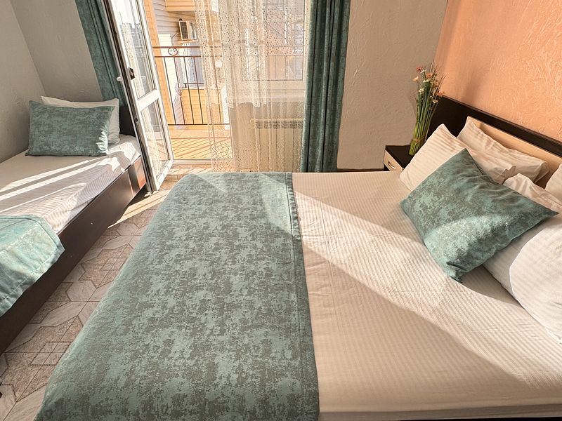 Путешествие с семьейОтдых в БаварииОтдыхали в Гостевом Доме Бавария с 3 по 14 июля 2020, ездили 4 взрослых и ребёнок 1,6 года. При бронировании сразу указали что хотим два номера рядом, так как летели мы с мужем и дочкой, моя мама и сестра, нас просили двухспальную кровать, а маме с сестрой раздельные. Прилетели мы в 3 часа ночи, в отели были в начале 5, при входе домофон, открыла администратор Кристина и сразу предложила пройти в наши номера, а все оформление сделаем утром как встанем, это очень приятно после ночного перелёта, особенно с маленьким ребёнком. Номера действительно дали напротив друг друга, по всем нашим пожеланиям. Номера обычные без излишеств, кровать, доп. место в виде диванчика, стул, стол, холодильник, чайник, ТВ, из посуды были стаканы и большая пластиковая миска для фруктов. Очень удобно что есть небольшая прихожая при входе. Туалетная комната с унитазом, душем и раковиной. Вообщем все что необходимо есть, полотенца по 2 шт на человека и коврик для ног.