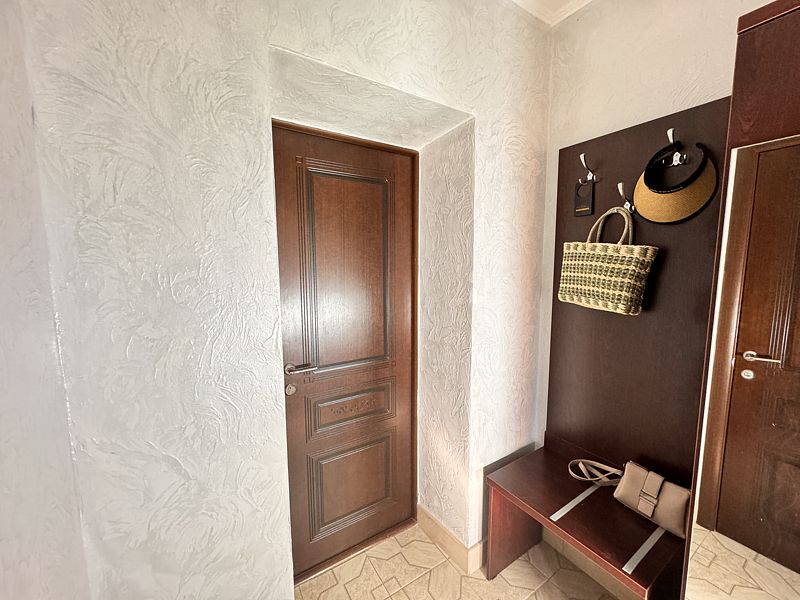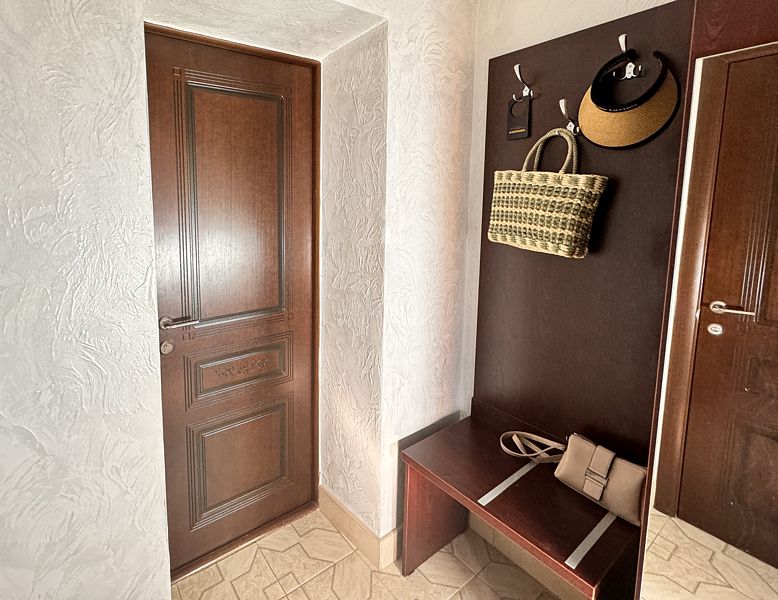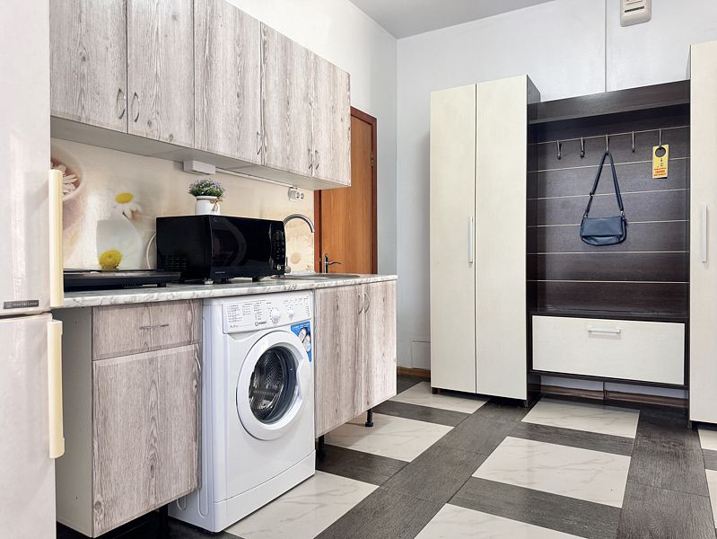 В прихожей находится шкаф для хранения вещей и вешалки для одежды, сейф. Для удобства гостей в наличии стиральная машина.