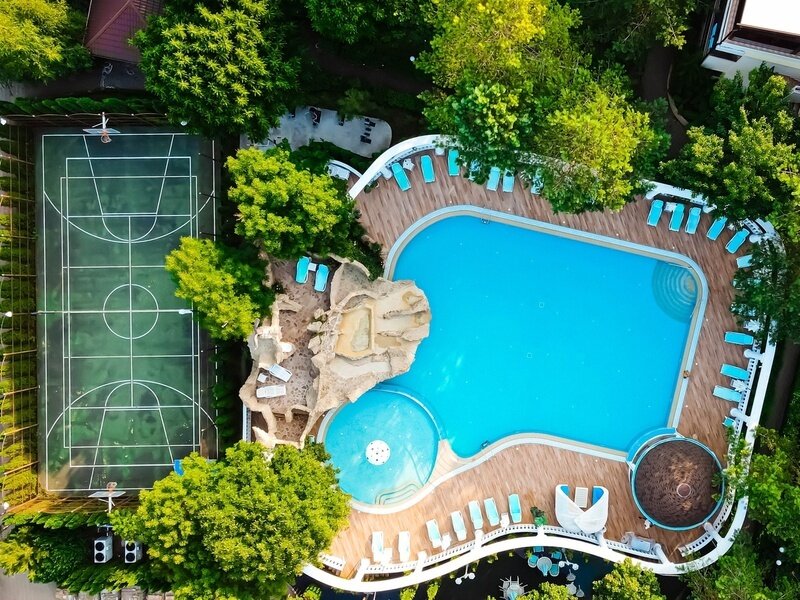 Тип бассейна: открытый бассейнВода в бассейне: подогреваемый бассейнРядом с бассейном: шезлонги, зонтики, бар у бассейнаТемпература в бассейне: 26 °CОчистка воды в бассейне с детским отделением производится методом без использования хлорсодержащих средств.