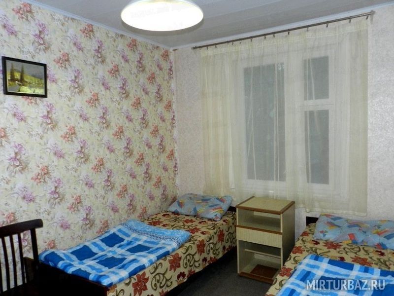 В номере: односпальные кровати, шкаф, тумбочки, стол, стулья, холодильник; санузел и душ общие.