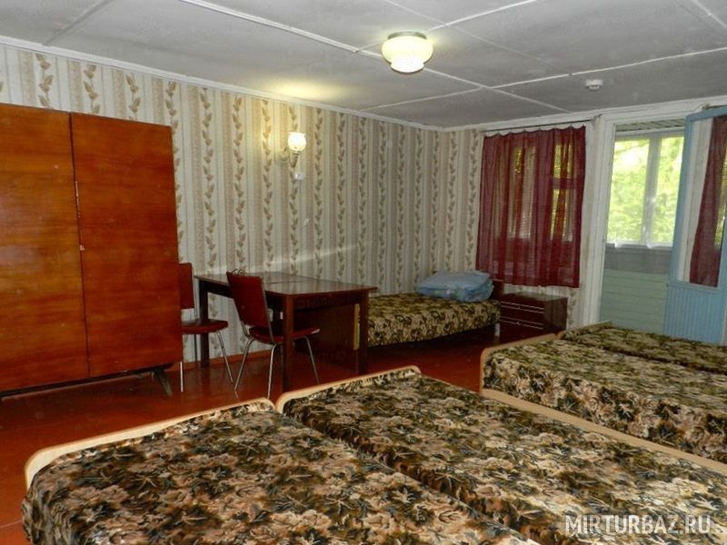 Для вашего размещения база отдыха предлагает двухэтажные домики с несколькими номерами внутри. На первом этаже есть двухместные и трехместные номера, на втором этаже – четырехместные и пятиместные номера, поэтому вы сможете выбрать наиболее удобный вариант. Если же у вас большая компания, то вы сможете арендовать весь домик целиком. Также в вашем распоряжении будет общая кухня со всеми принадлежностями для приготовления пищи. Санузел общий и находится на территории в удобной близости.