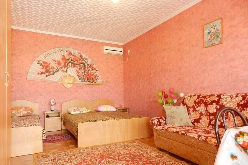 Посетители гостевого дома могут расположиться в удобных номерах класса «Стандарт», вместимостью от трех до пяти человек. Приготовление еды самостоятельное на кухне со всем необходимым. Гости могут воспользоваться стиральной машиной, автостоянкой, мангалом, настольным теннисом. Для детей имеется детская площадка и надувной бассейн. Можно заказать трансфер и различные экскурсии.