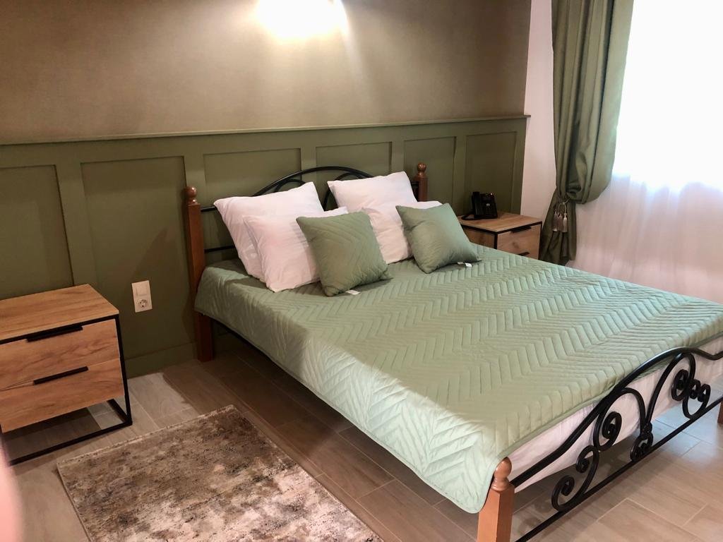 В данном номере Комфорт есть все необходимое для комфортного проживания: двуспальная кровать или 2 отдельные кровати, прикроватные тумбы, туалетный столик, пуфик, шкаф, холодильник, телевизор, сплит-система, москитные сетки на окнах. Ванная комната с душем, унитазом, раковиной, жидким мылом, туалетной бумагой и банным и лицевым полотенцем для каждого гостя. Цвета мебели и стен в номерах могут различаться. Обратите внимание, что курение в номерах запрещено. Стоимость проживания включает питание по выбранному тарифу. Во время проживания у вас есть возможность пользоваться подогреваемым бассейном (с 01 мая), детской площадкой и детской комнатой, имеется аниматор. За дополнительную плату можно воспользоваться зоной для приготовления барбекю и парковкой, бильярдным и теннисным столами.