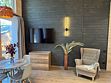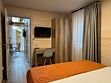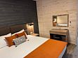 В номере одна двуспальная кровать, один двуспальный диван и две односпальные кровати. Имеется телевизор, кондиционер, шкаф, вешалка, журнальный столик, холодильник и стулья. Индивидуальная ванная комната включает душ, раковину и туалет.