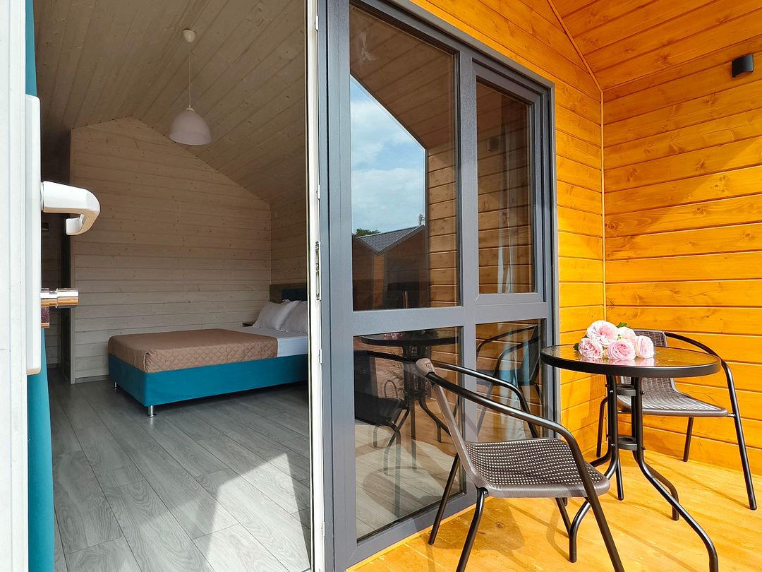 Гостям предлагаются комфортабельные и уютные домики, оснащенные всем необходимым для комфортного проживания. В каждом из них есть удобное спальное место, прикроватные тумбочки, шкаф, зеркало, вешалка, мини-холодильник, телевизор и сплит-система. Ванная комната обустроена новой сантехникой.