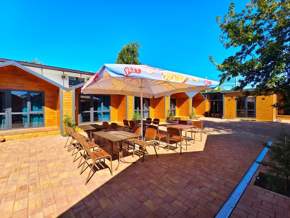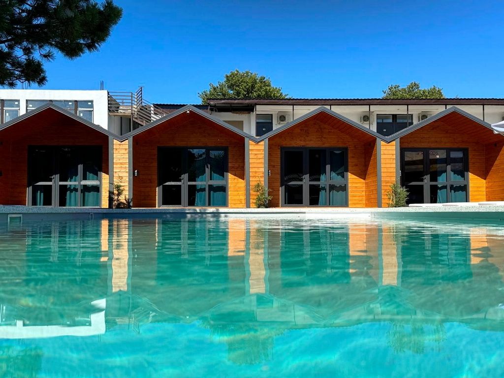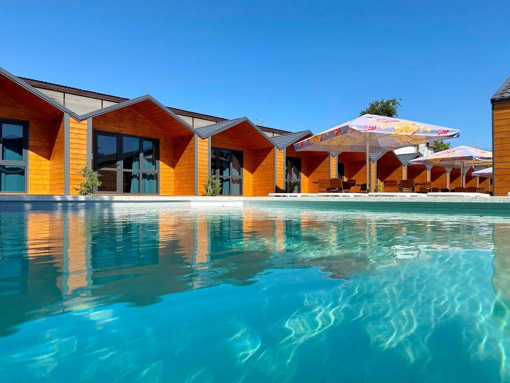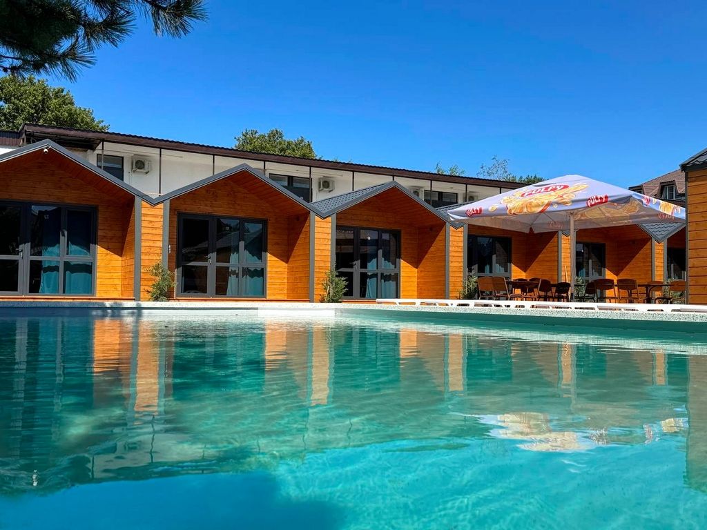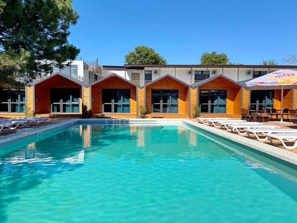 Для гостей доступен широкий спектр дополнительных услуг, включая открытый бассейн, бар и трансфер. База отдыха находится на первой береговой линии, всего в 200 метрах от пляжа Черного моря, что позволяет наслаждаться морем и солнцем в любое время.