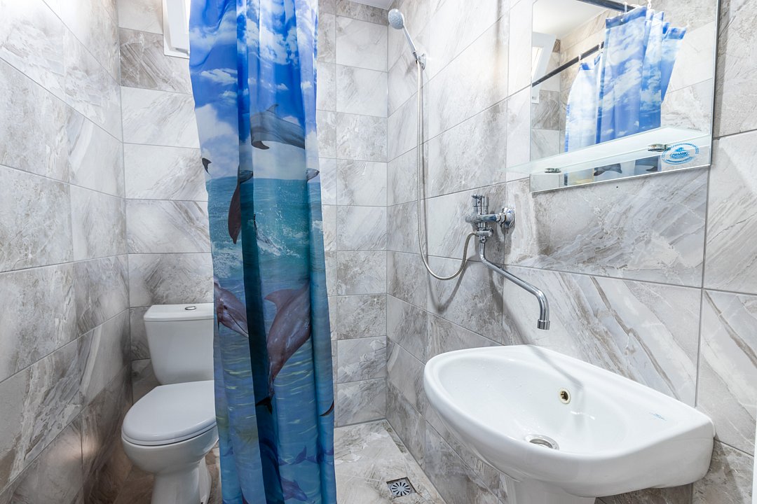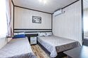 В номере: Две двуспальные кровати, односпальная софа, зеркало, пуфик, шкаф, тумбочки, ТВ, кондиционер, холодильник, чайник с мелкой посудой, микроволновка, совмещенный душ, туалет, полотенца все кроме пляжных, постельное белье, фен. Окна выходят во внутренний двор. Уборка 1 раз в 3 дня. Смена полотенец 1 раз в 3 дня. Смена постельного белья 1 раз в 5 дней.