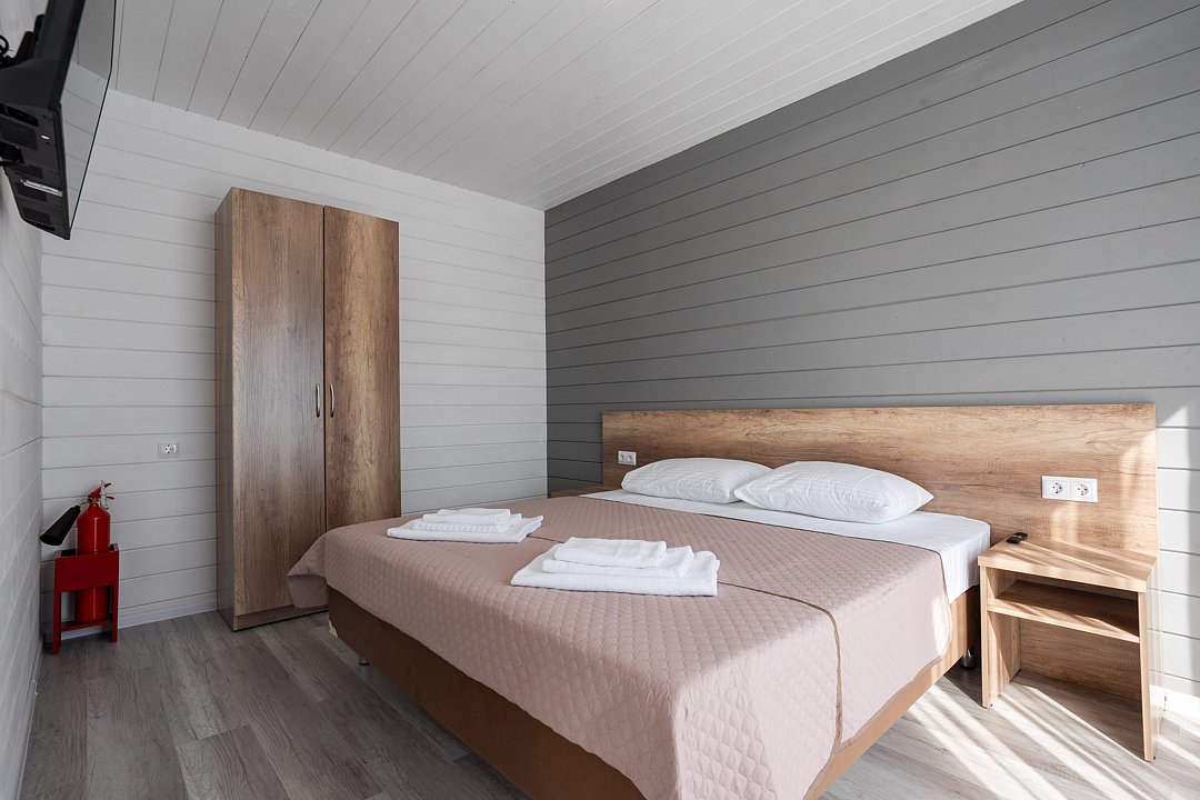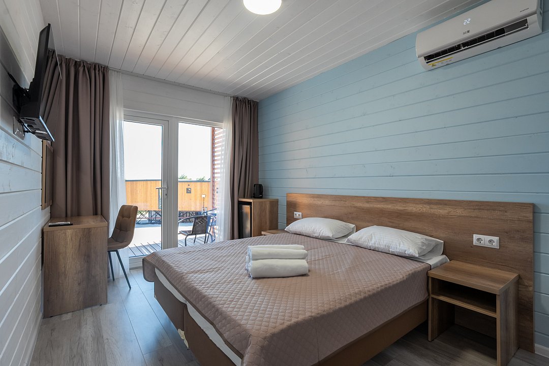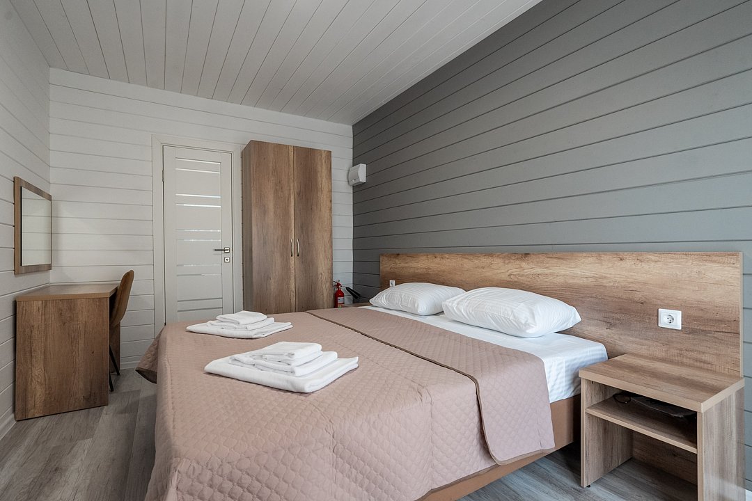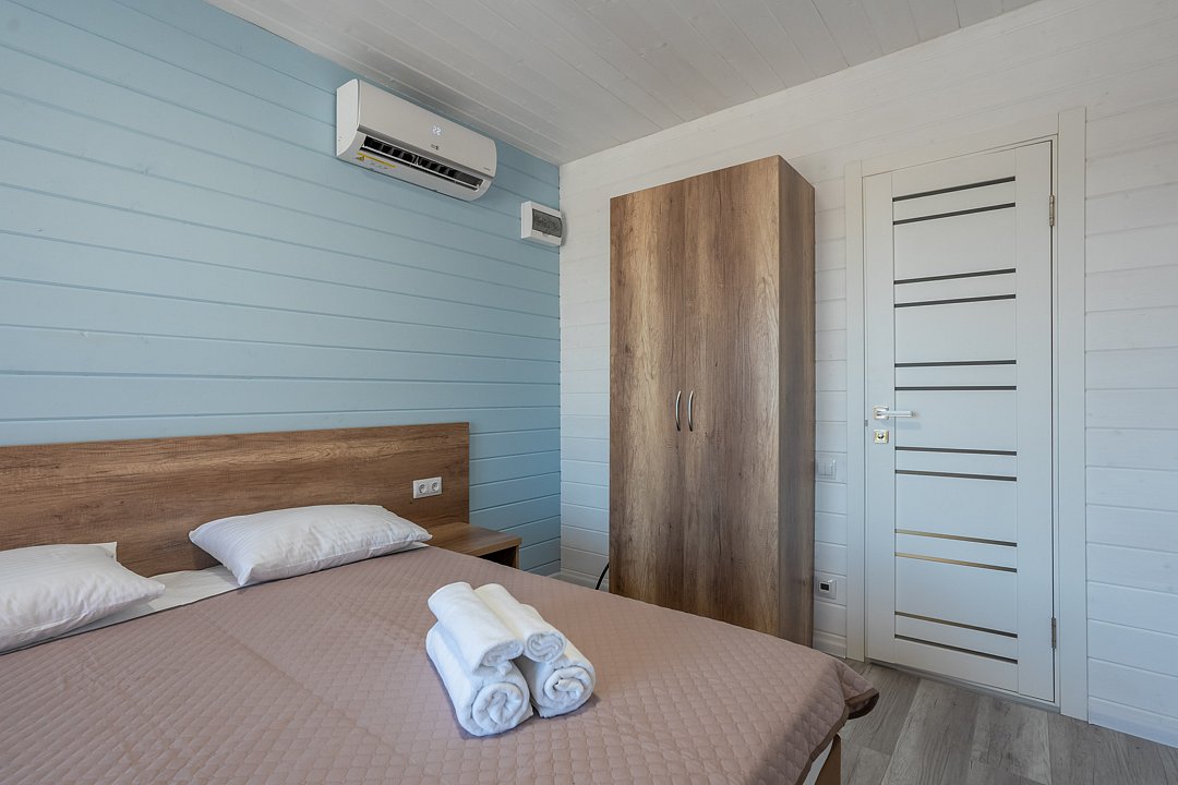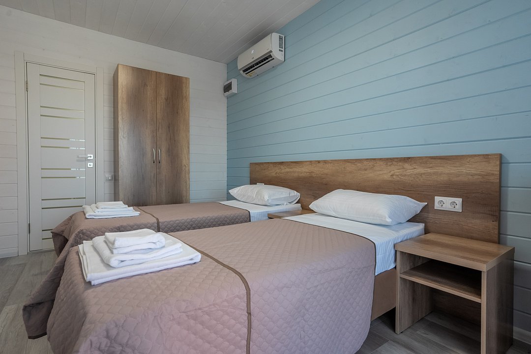 Для размещения гостей предусмотрены современные двухэтажные коттеджи с тщательно продуманными номерами: двухместными, четырехместными и люксами у бассейна. На территории комплекса расположен подогреваемый бассейн с шезлонгами, оборудованная кухня и охраняемая парковка, что создает все условия для комфортного и спокойного отдыха.