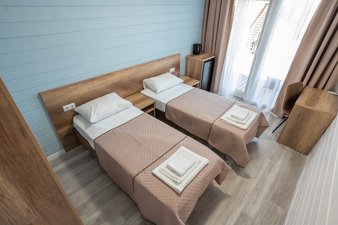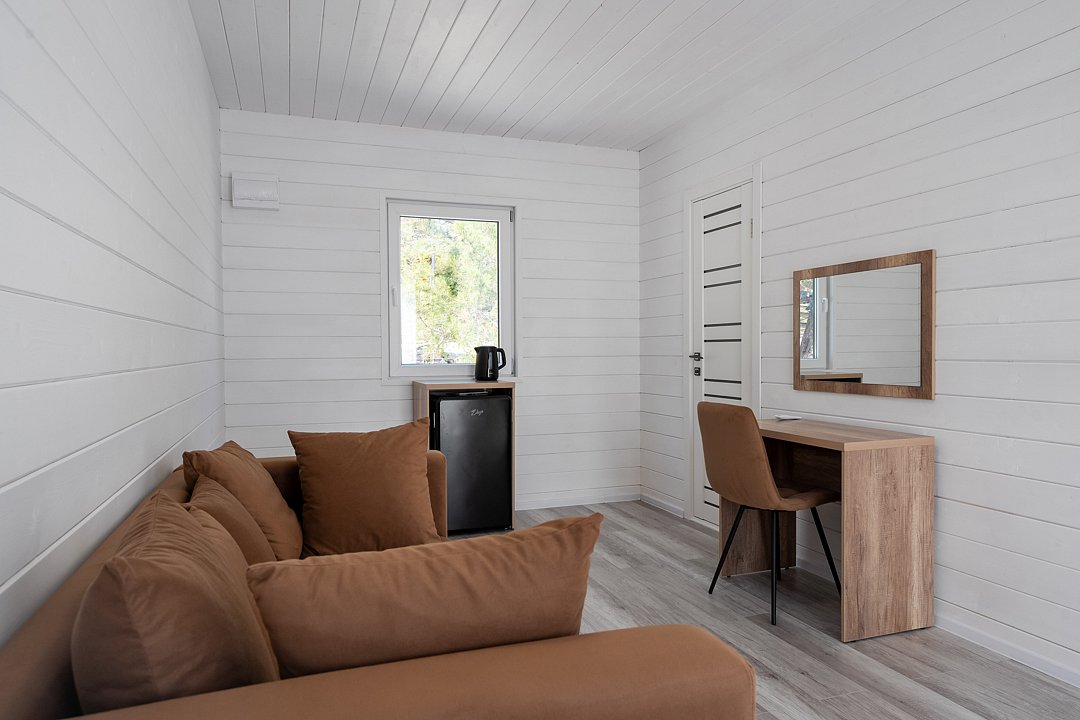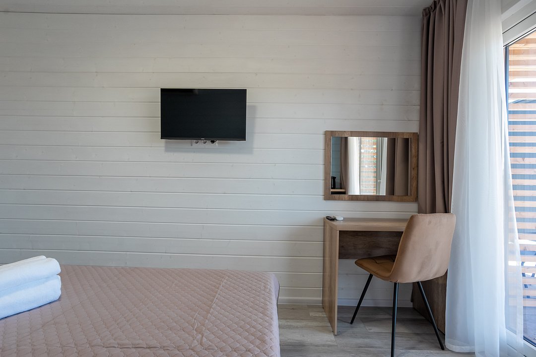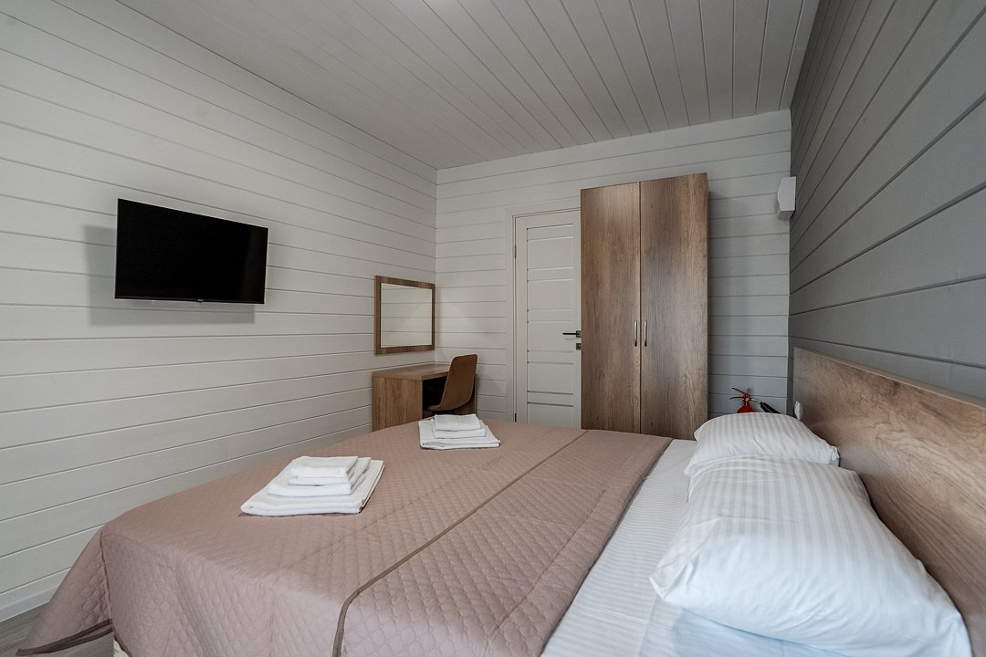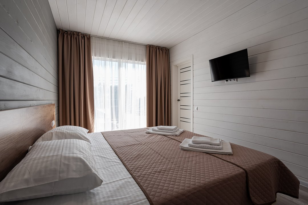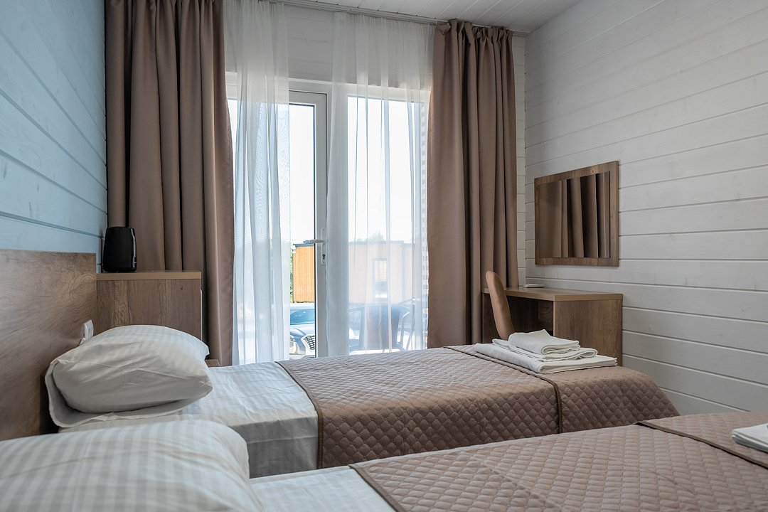 Для размещения гостей предусмотрены современные двухэтажные коттеджи с тщательно продуманными номерами: двухместными, четырехместными и люксами у бассейна. На территории комплекса расположен подогреваемый бассейн с шезлонгами, оборудованная кухня и охраняемая парковка, что создает все условия для комфортного и спокойного отдыха.