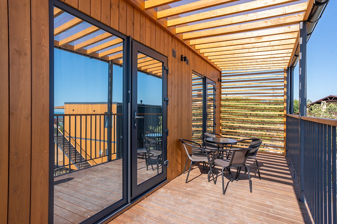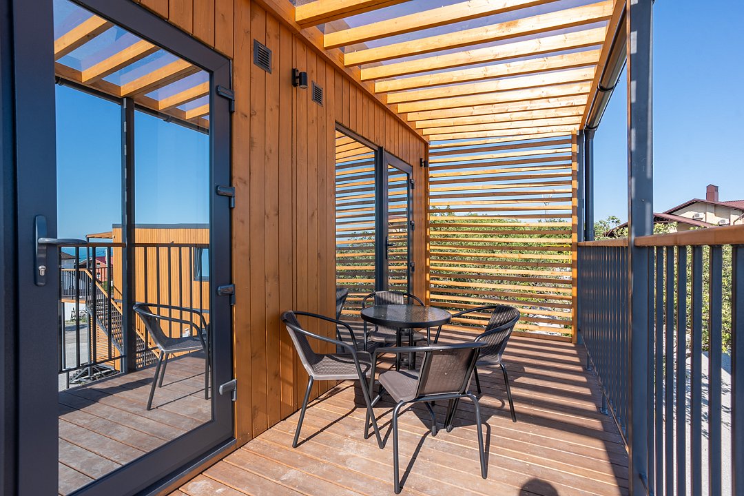 На веранде столик со стульями. Общая площадь номера 40 м².