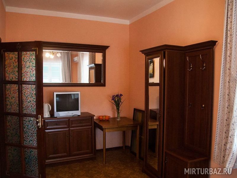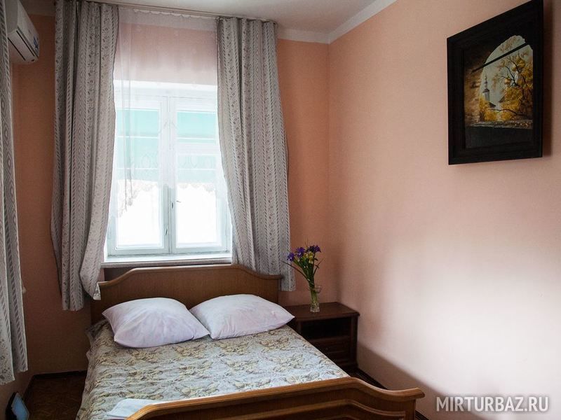 Небольшой номер с одной двуспальной кроватью. Два номера типа эконом на базе имеют общий туалет и душ, а также гостевую комнату, в которой расположены диван, журнальный столик, телевизор, холодильник и микроволновая печь. Предусмотрена возможность одновременно снять оба номера одной семье.