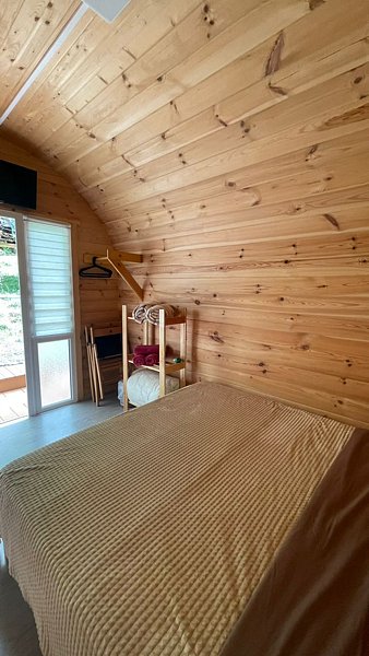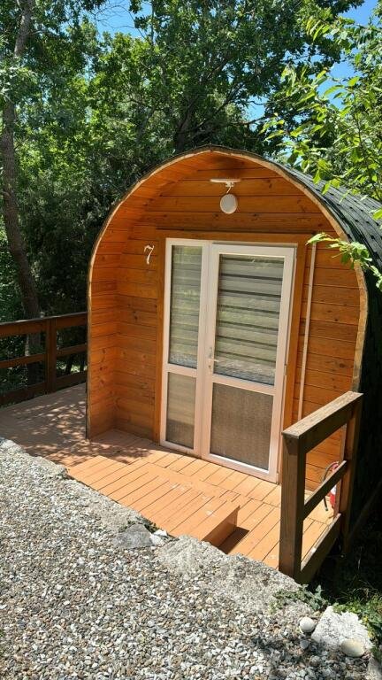 Экодомики, сделанные из современных натуральных материалов, вмещающие до 2-х человек. Душ и туалет находится на территории, недалеко от места проживания.