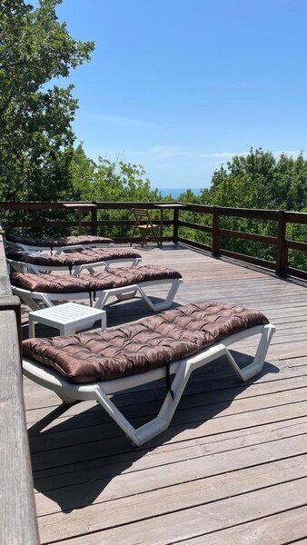 Семейный отдыхДостоинстваМы провели 5 дней в двухэтажном домике, остались очень довольны ) Территория базы очень ухоженная и комфортная, есть классная веранда, откуда удобно высматривать созвездия по ночам)) До моря совсем недалеко, можно хоть по несколько раз в день ходить) Местные котаны добавляют очарования этому месту, советую запастись вкусняшками для них 😊